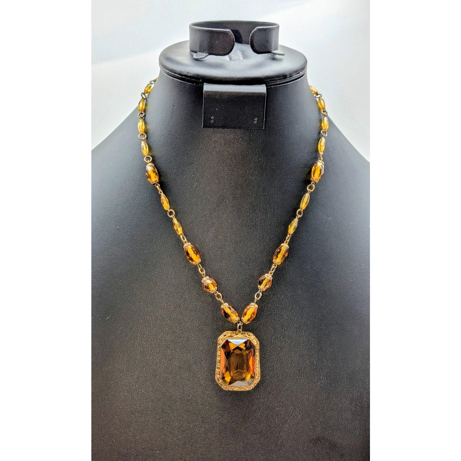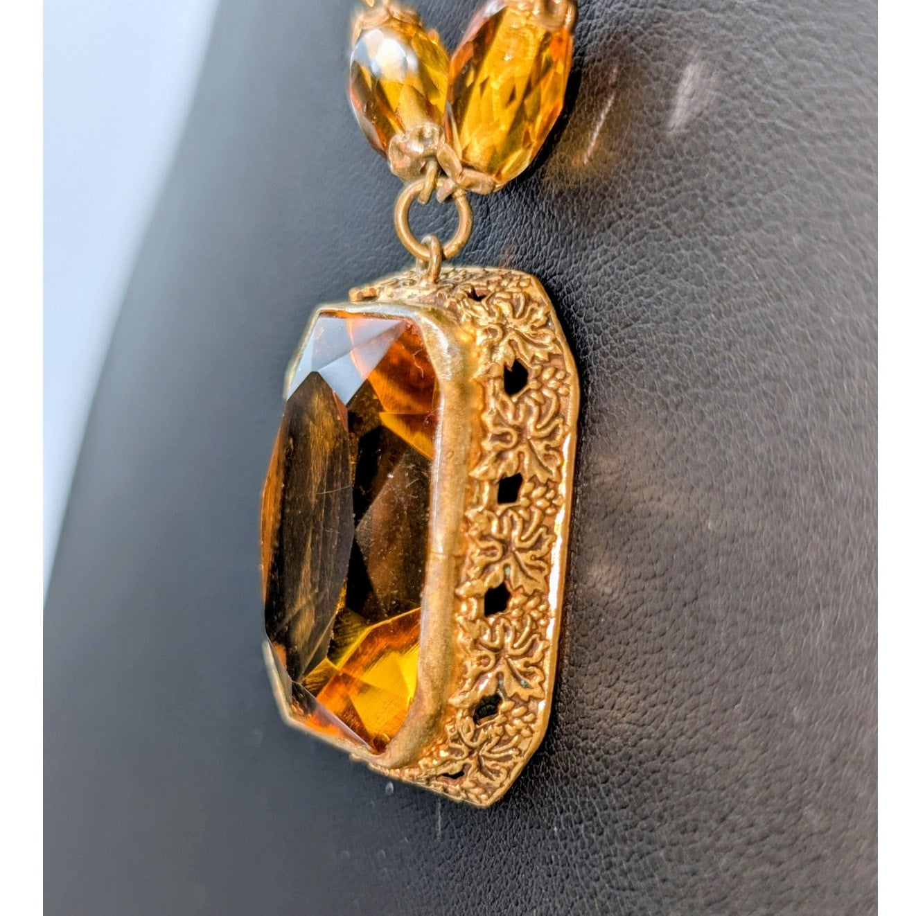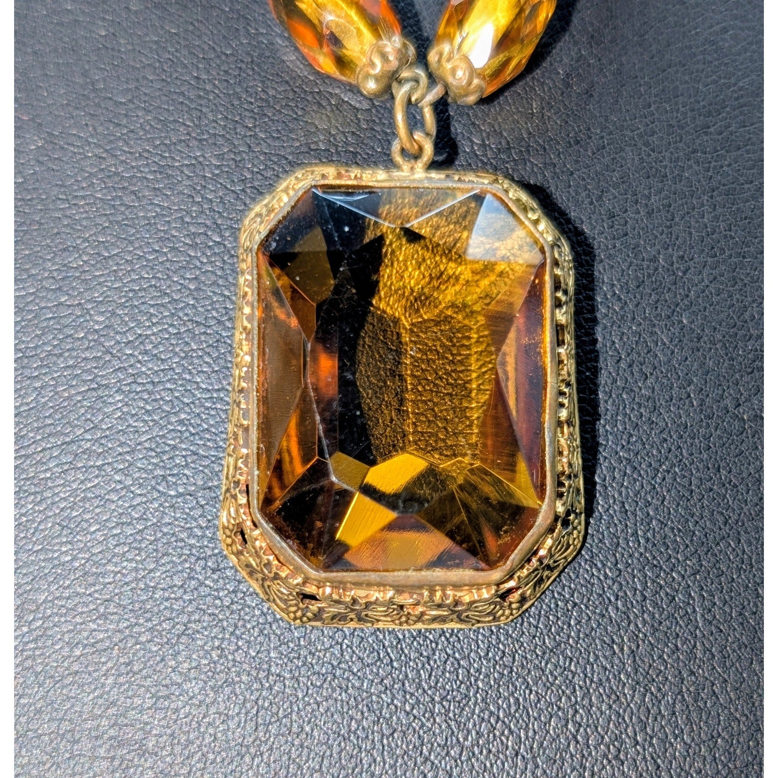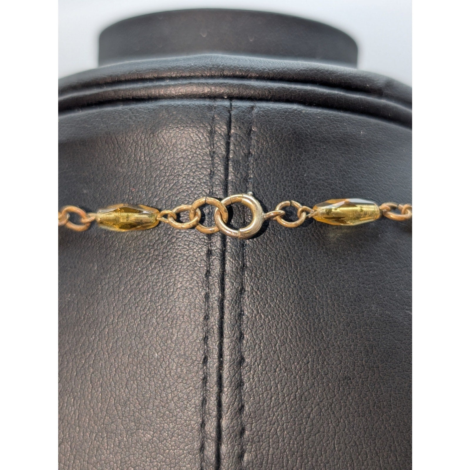 Vintage Antique Signed Czech Edwardian Nouveau Bohemian Glass Choker Necklace. Measures just under 19" long. Signed on the jump ring. Topaz yellow glass. Gold plated metal. This antique piece is signed by a Czech artist and is a great addition to an antique jewelry collection. This necklace is in excellent antique condition.