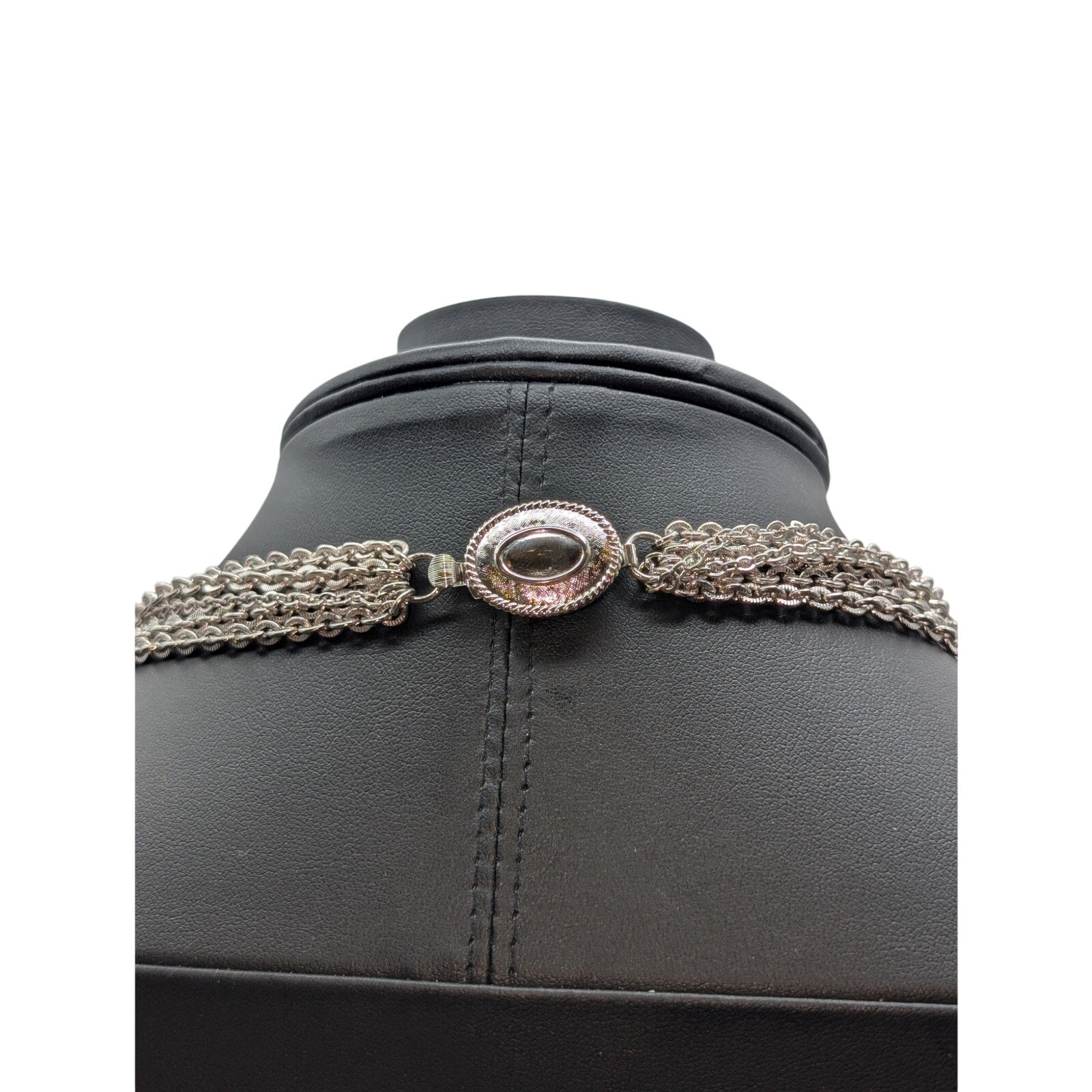 Vintage Avon Silver Tone 7 Strand Chain Necklace & Two Bracelet Set