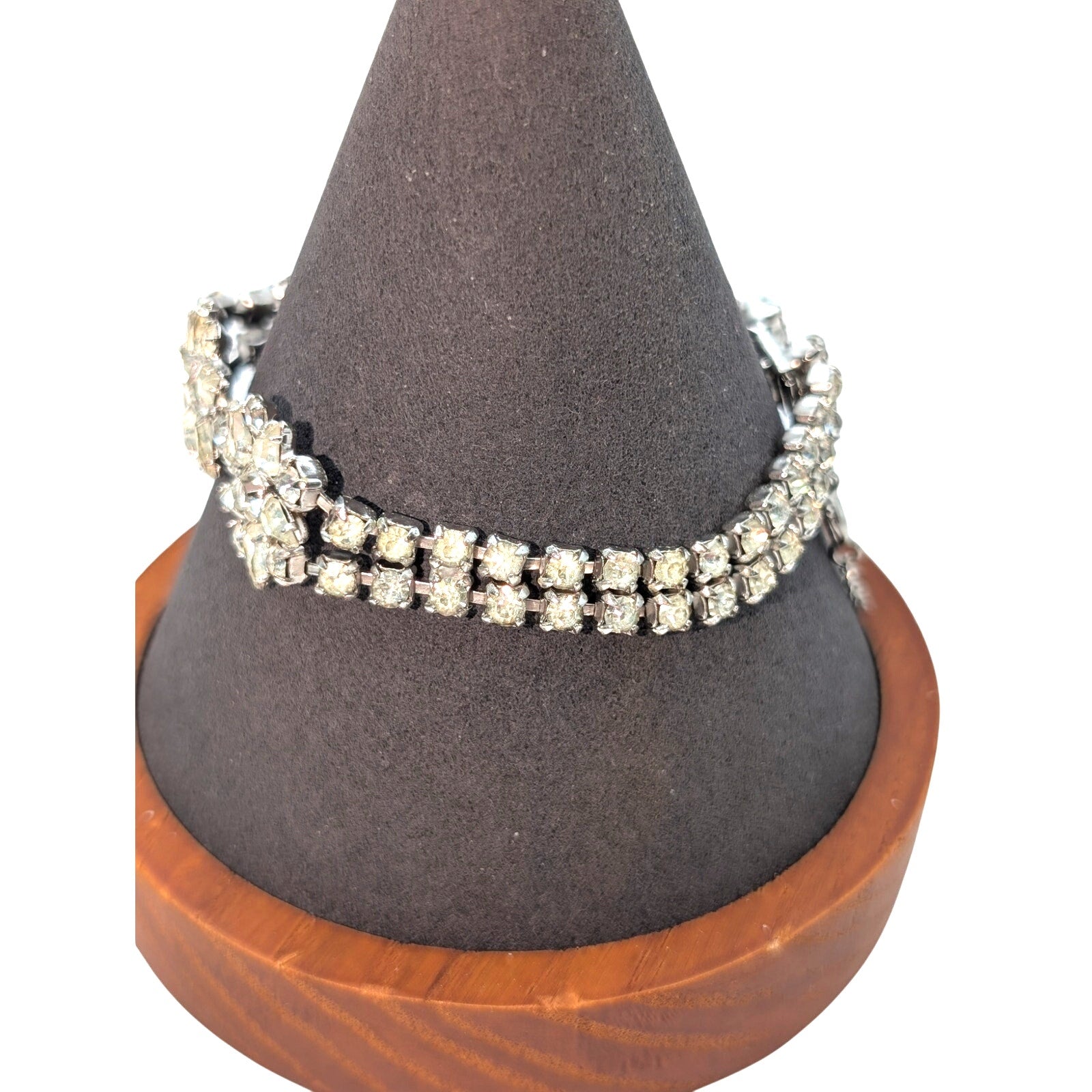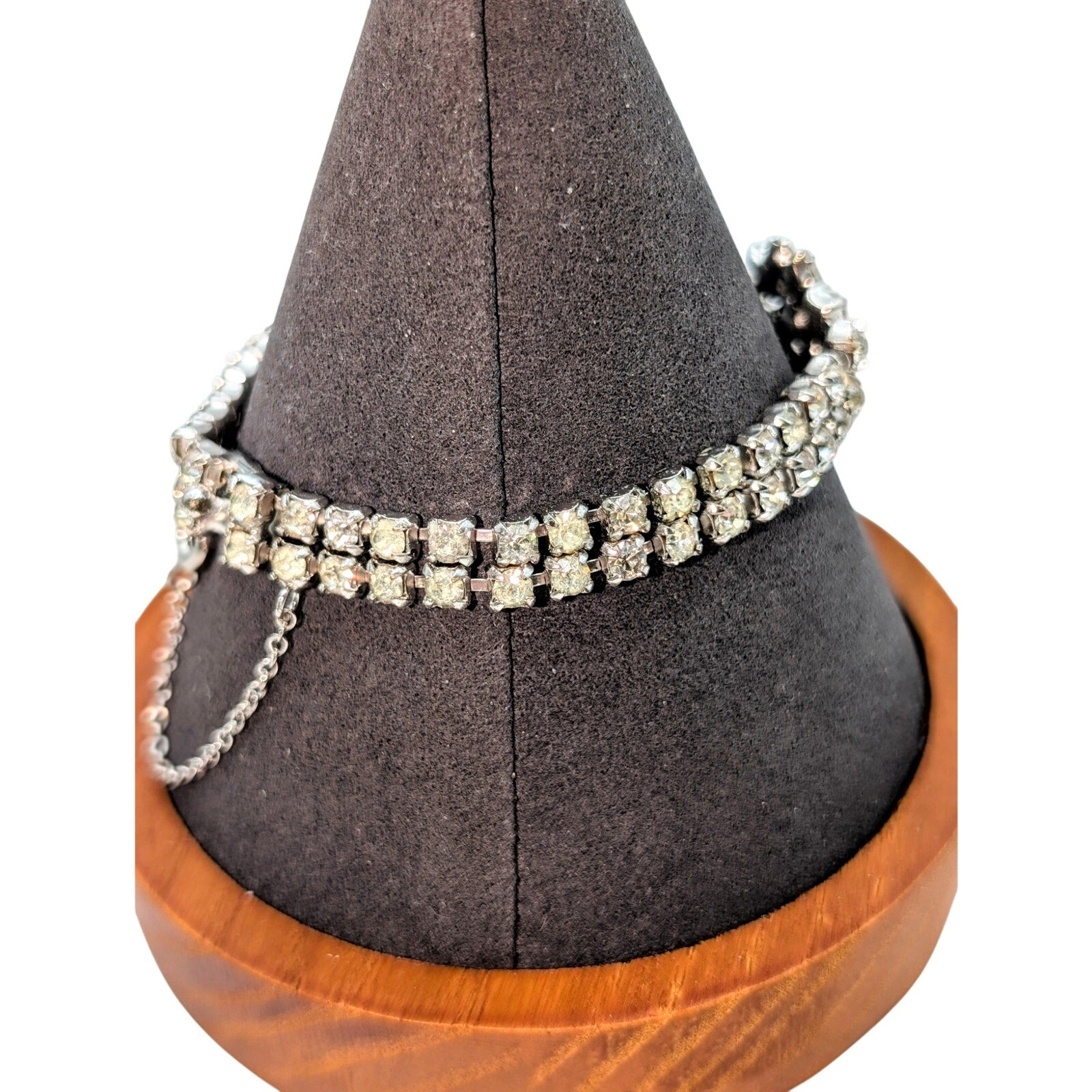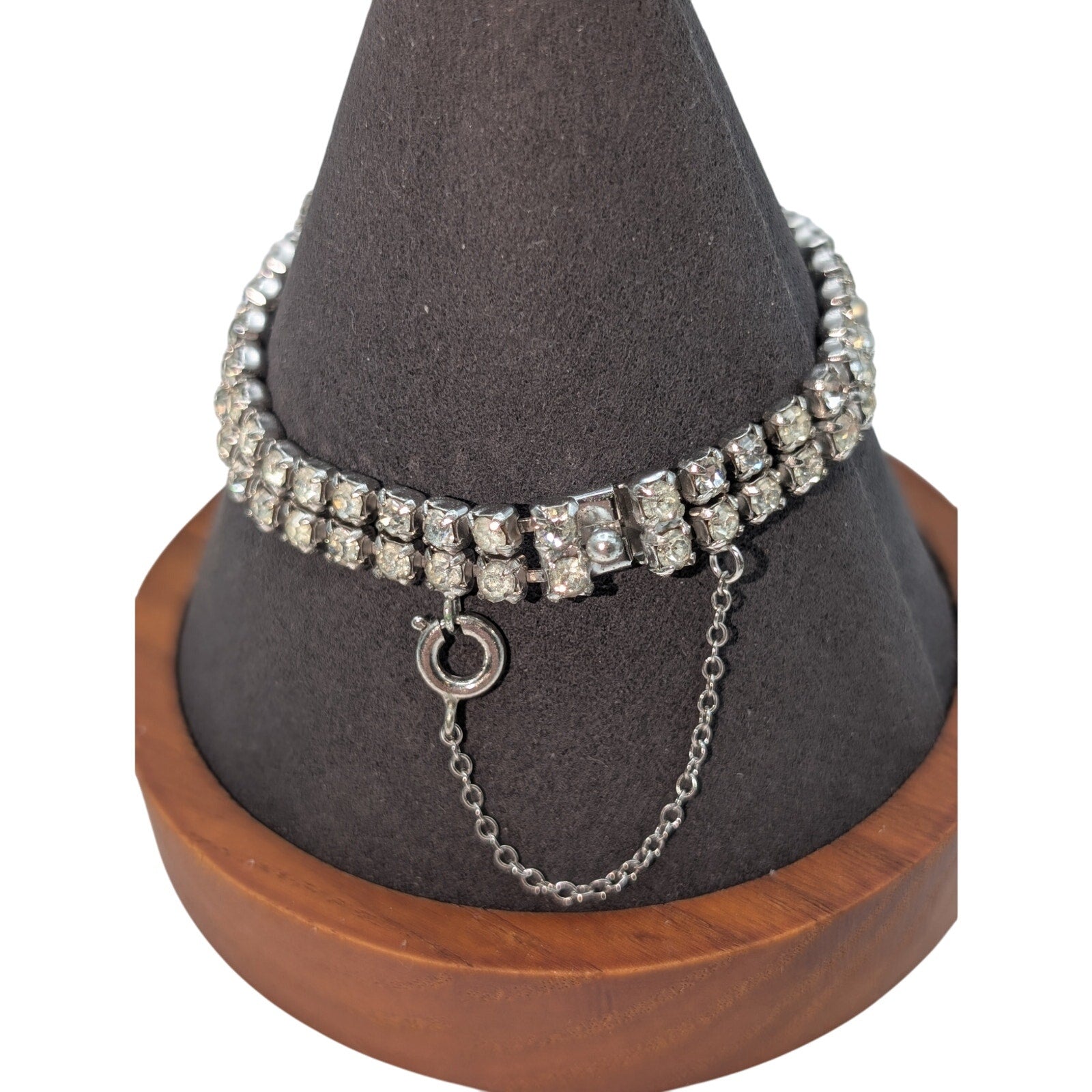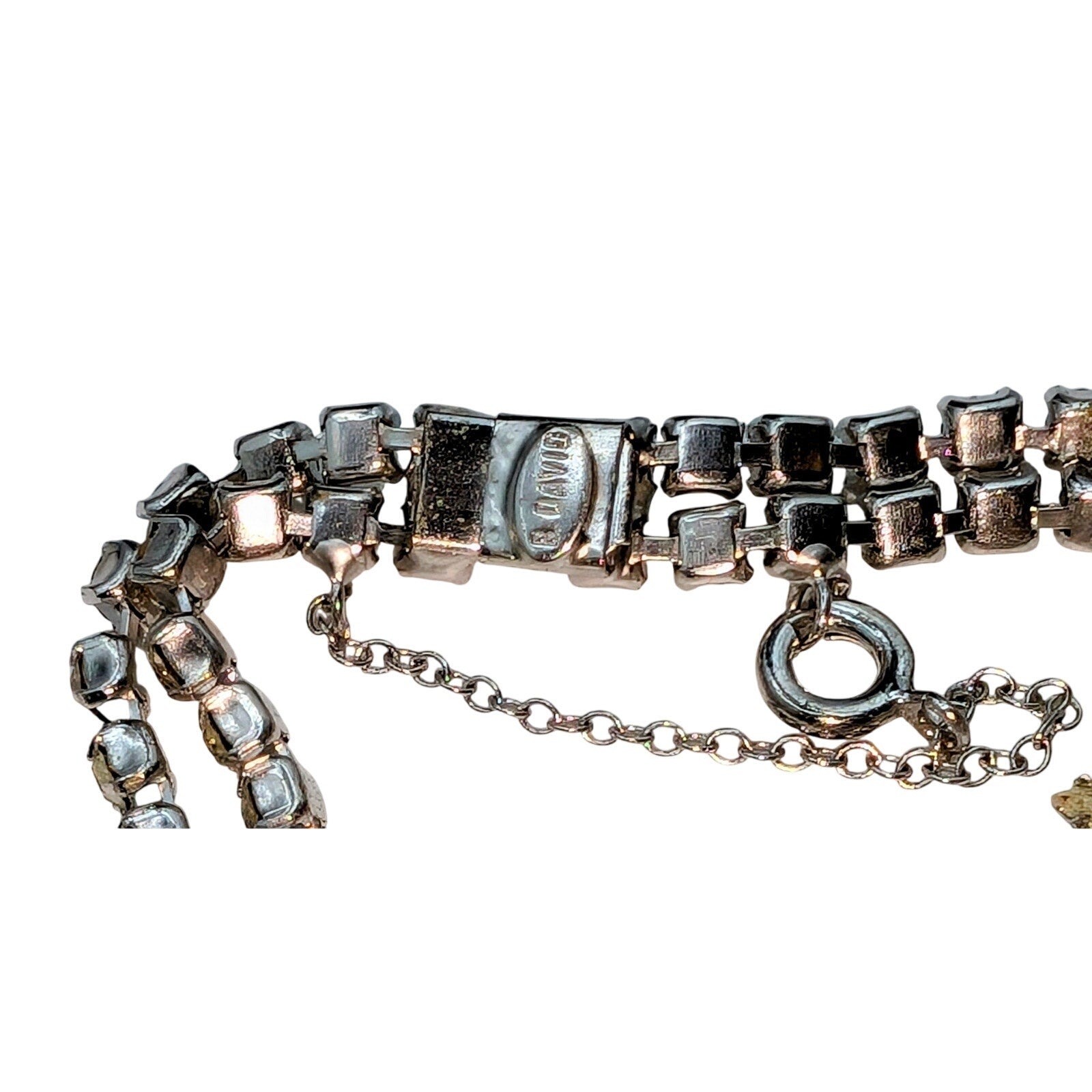 Vintage B. David Star Flower Rhinestone Bracelet W/ Safety Chain. Pre-owned, this bracelet is in excellent vintage condition. Slide in clasp and safety chain.