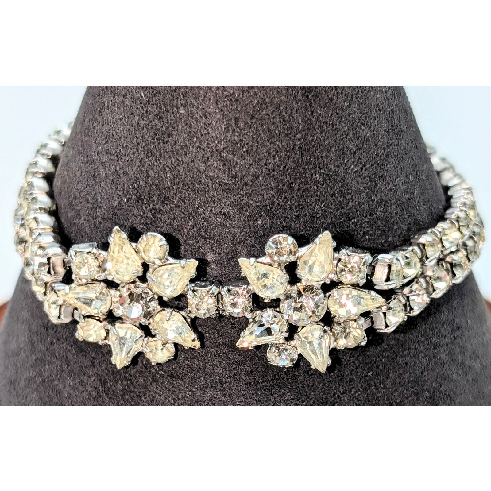 Vintage B. David Star Flower Rhinestone Bracelet W/ Safety Chain