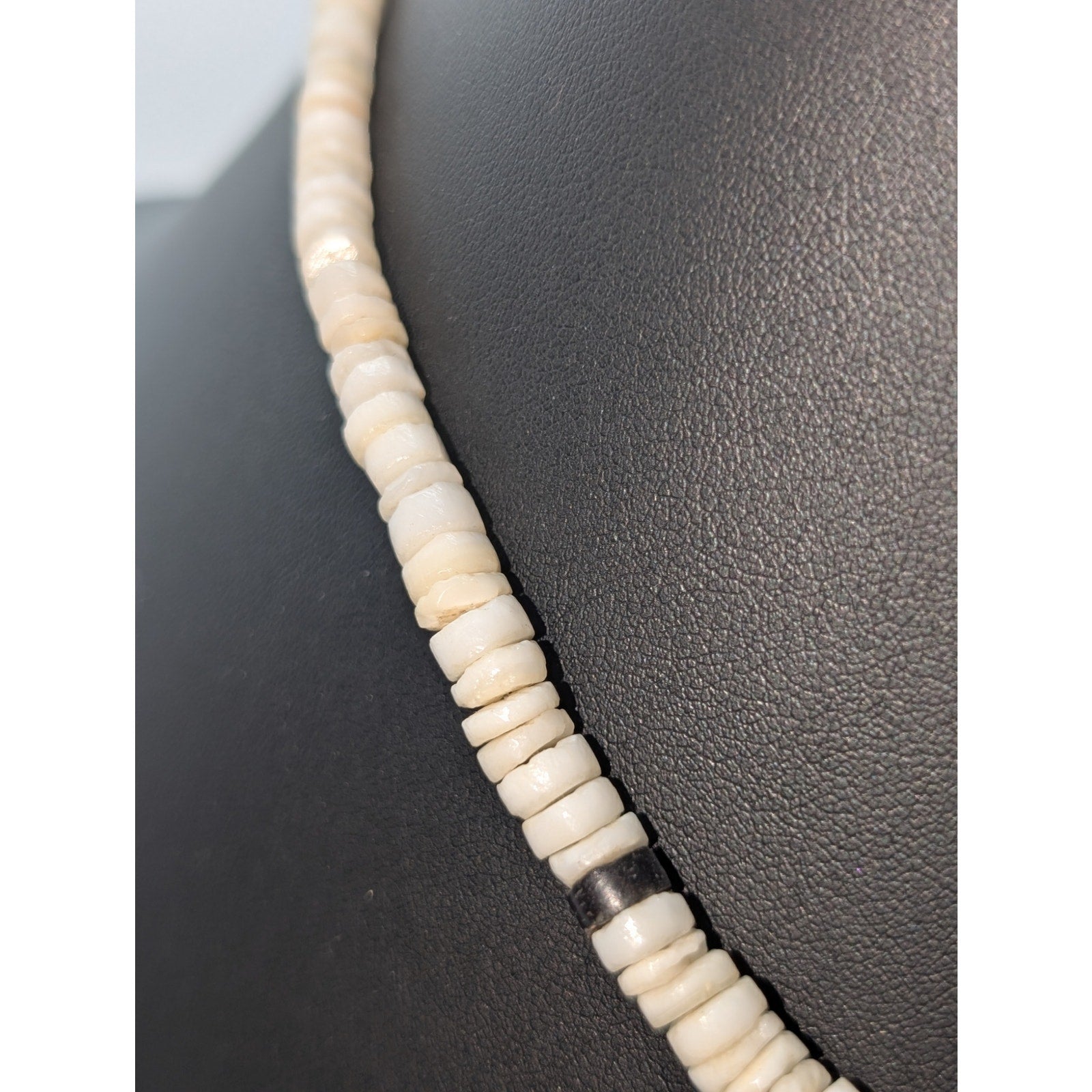 Vintage Carved MOP Island Bird White & Black Accent Shell Bead 18" Necklace