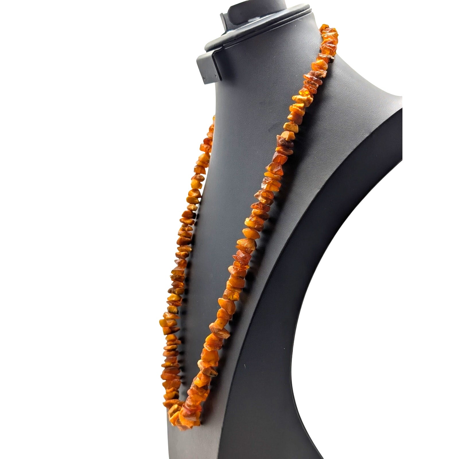 Vintage Chunky Genuine Raw Amber Graduated Nugget 32" Necklace 64.38g. Pre-owned, this amber necklace is in great vintage condition. Wear only on gold tone spring ring clasp.