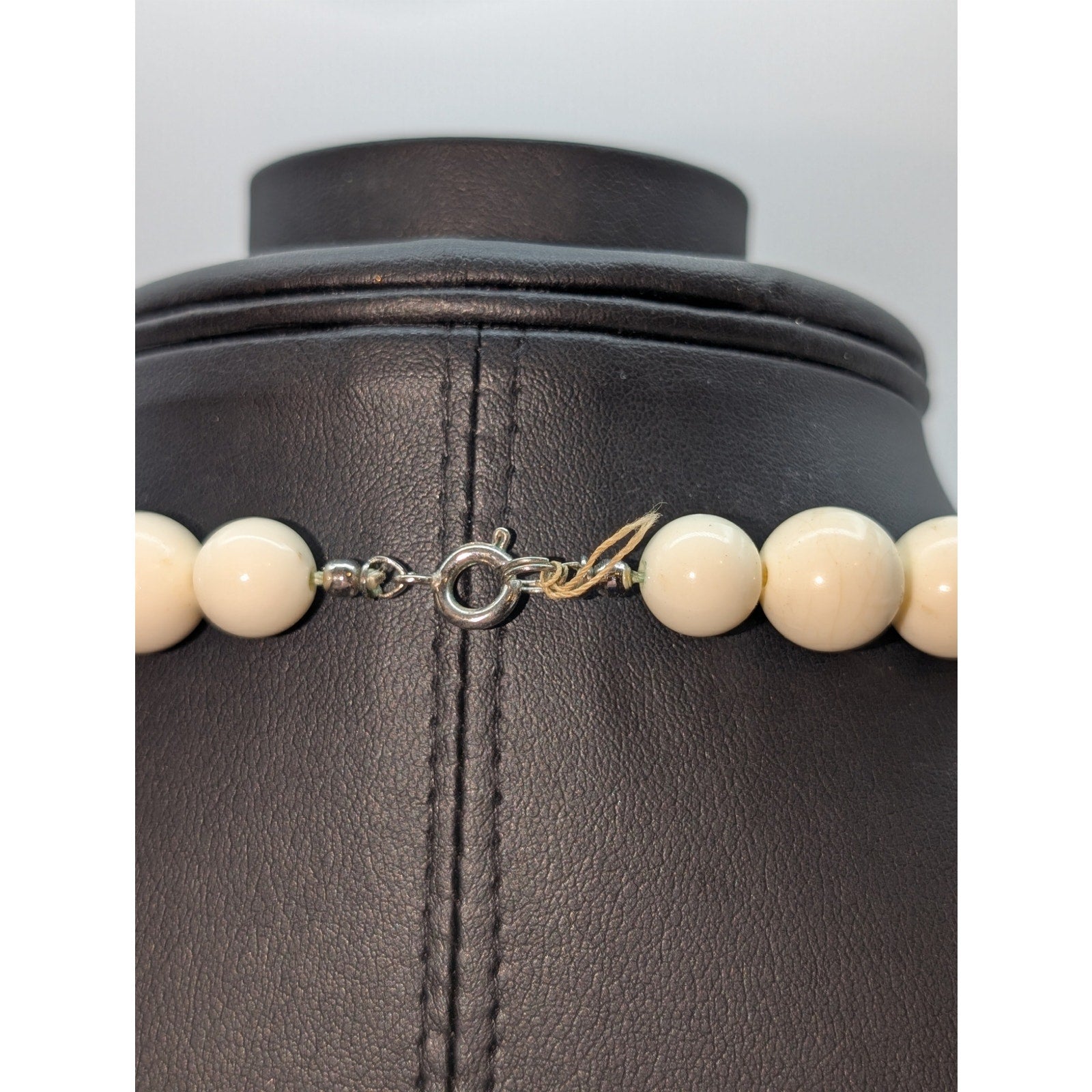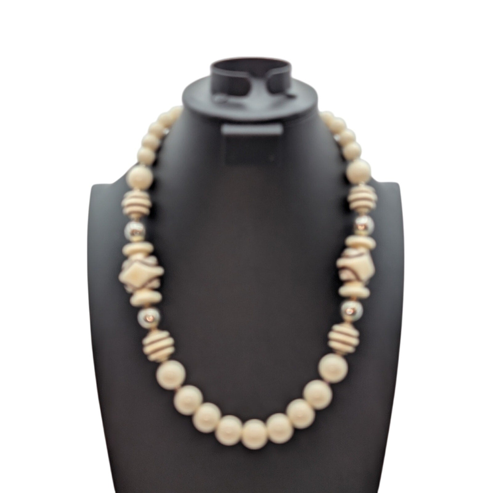 Vintage Cream Brown Stripe Silver Tone Beaded 25" Necklace. Pre-owned, this necklace is in excellent vintage condition.