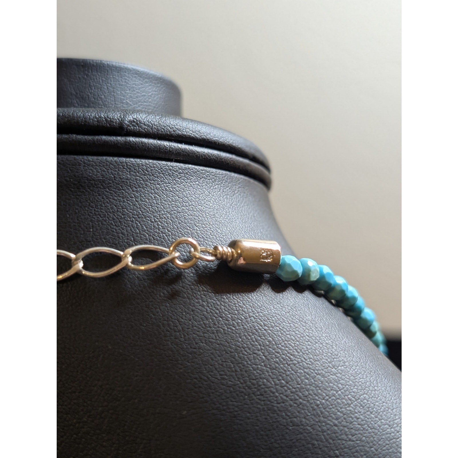 Vintage DTR Sterling Silver Faceted Cut Graduated Turquoise Bead 18"-20.5" Necklace. Weighs 18.5 grams. Pre-owned, this necklace is in excellent condition.