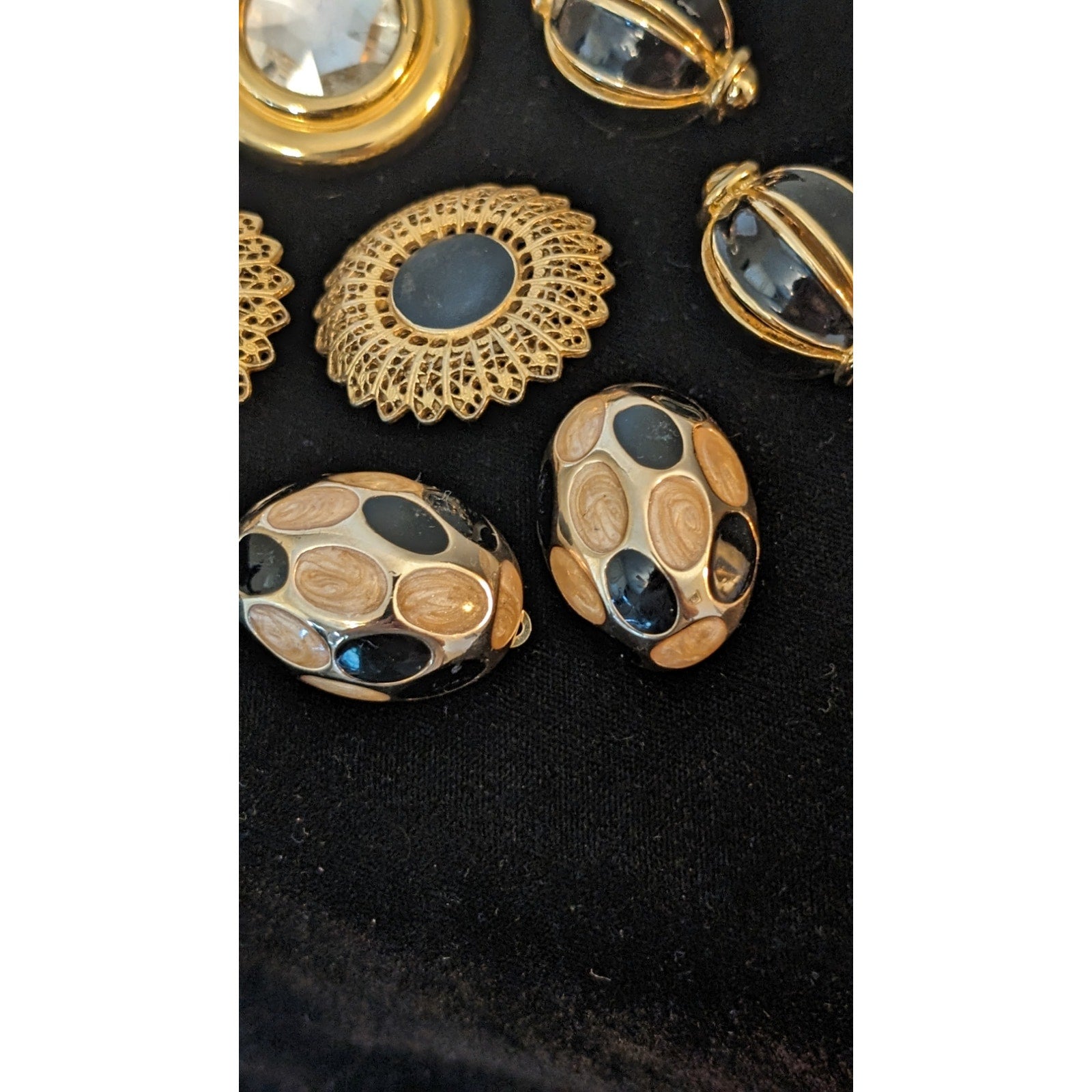 Vintage Five Pair Substantial Clip On Gold Tone Metal Earring Lot