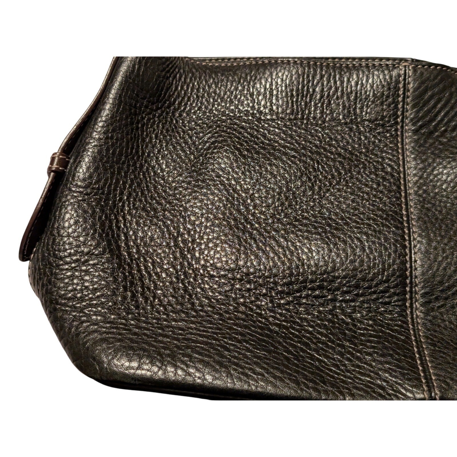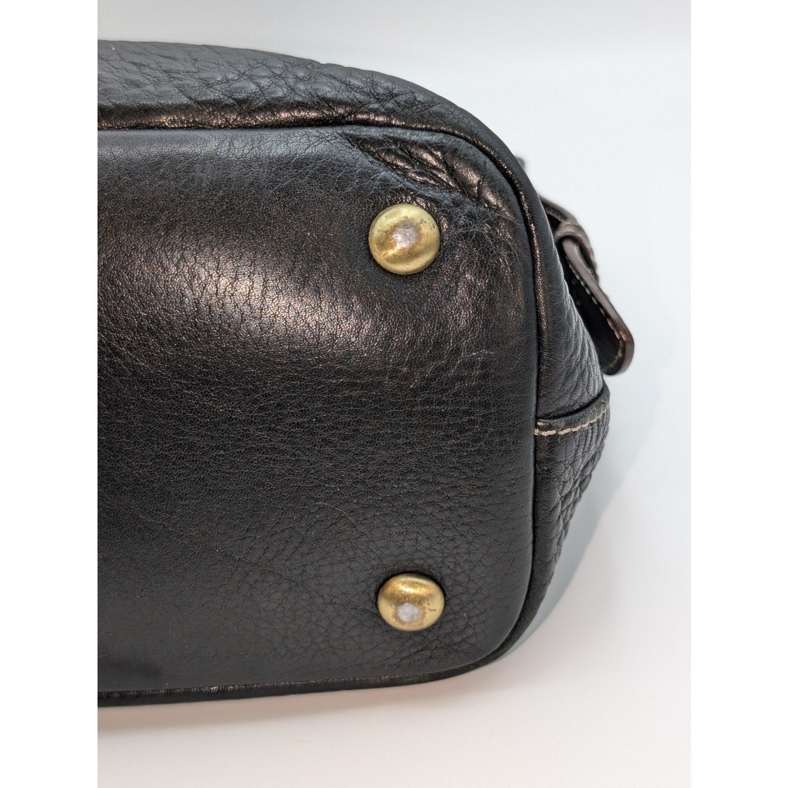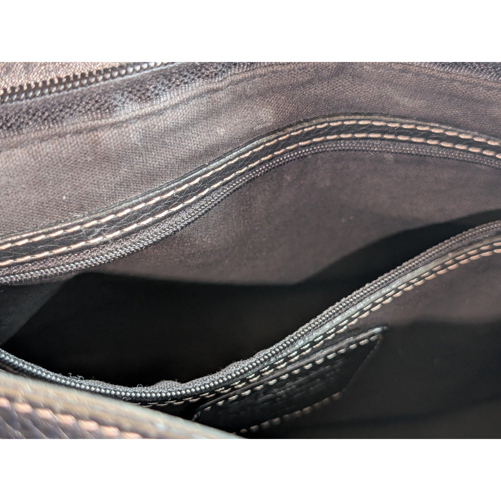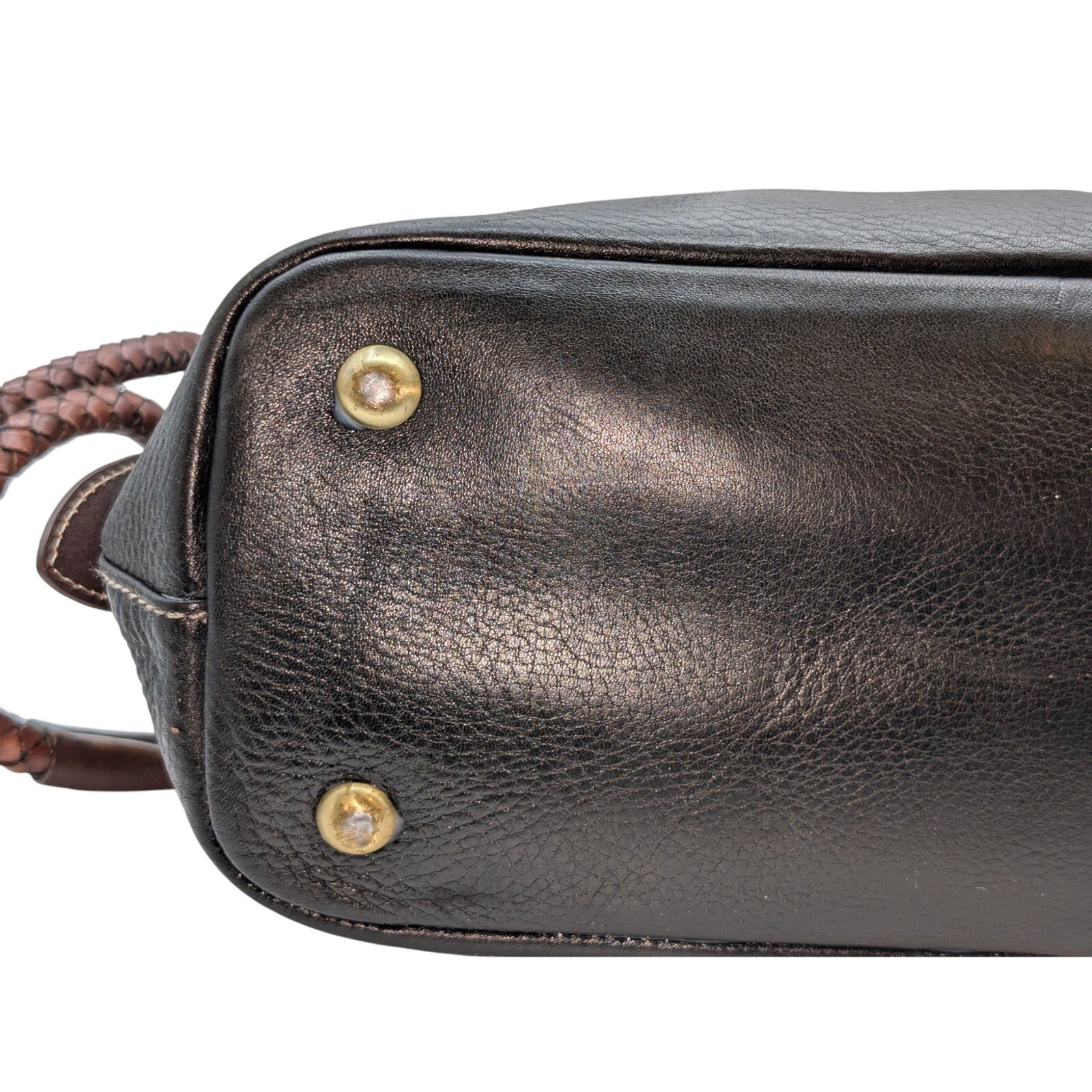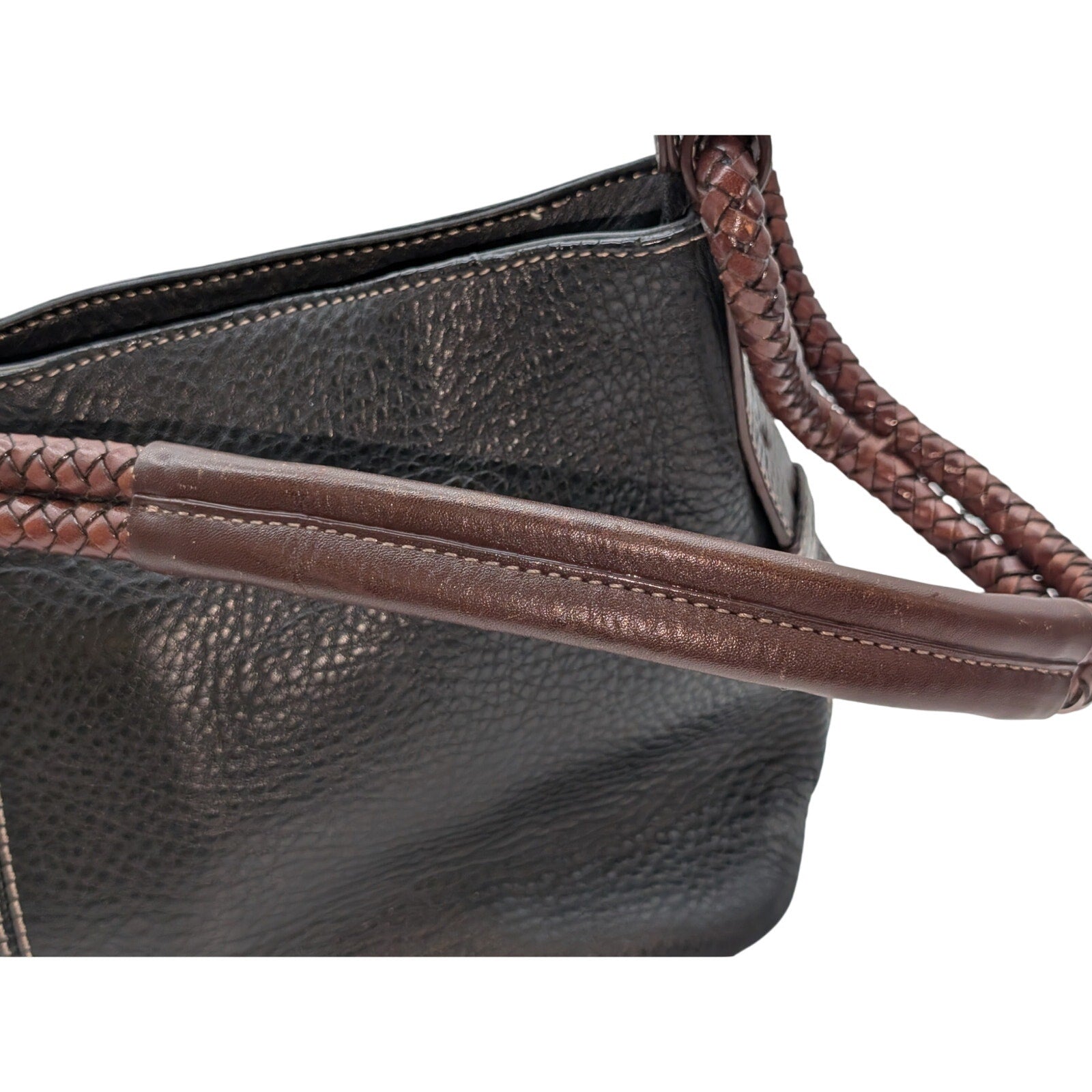 Vintage Fossil Black Brown Pebbled Leather Braided Handle Shoulder Bag