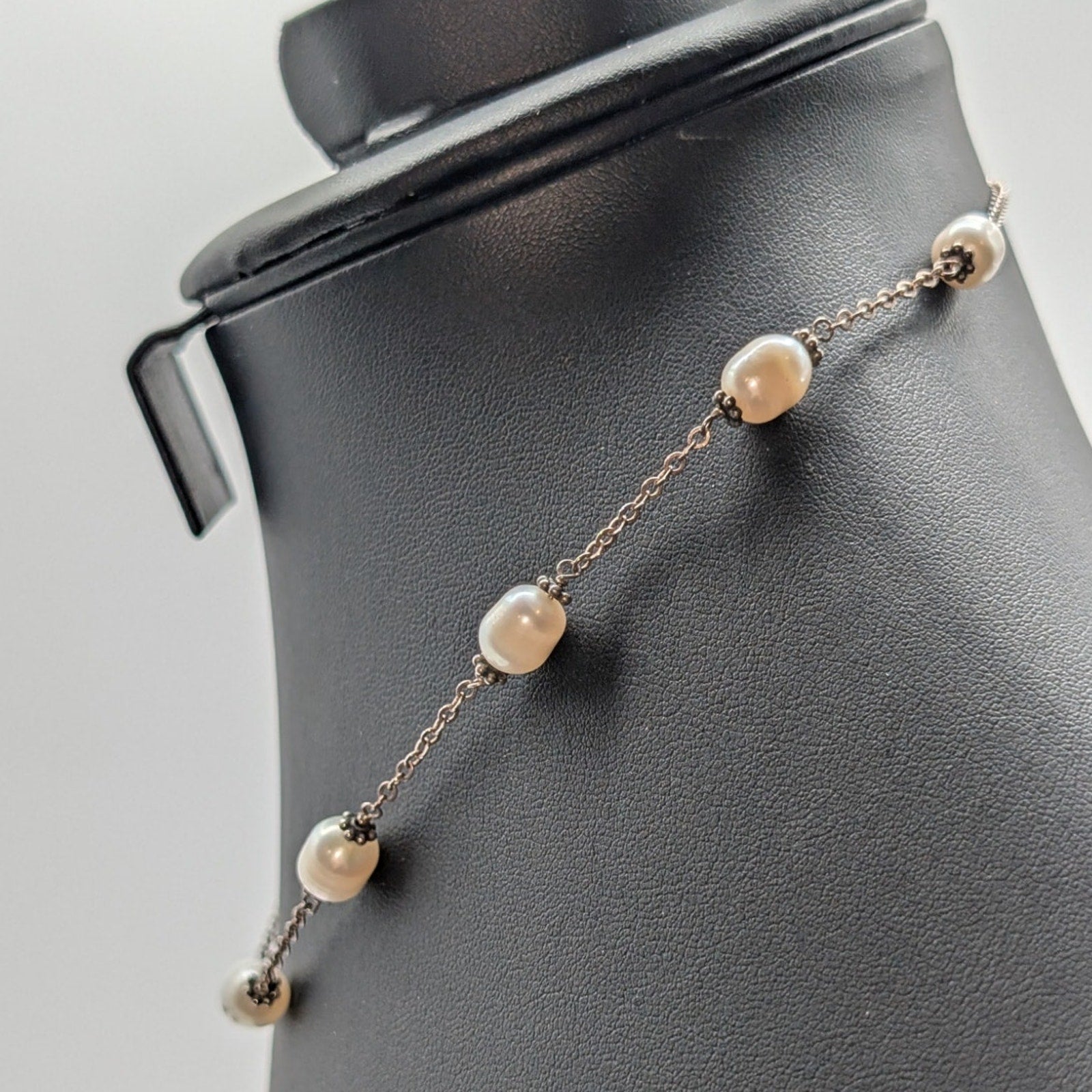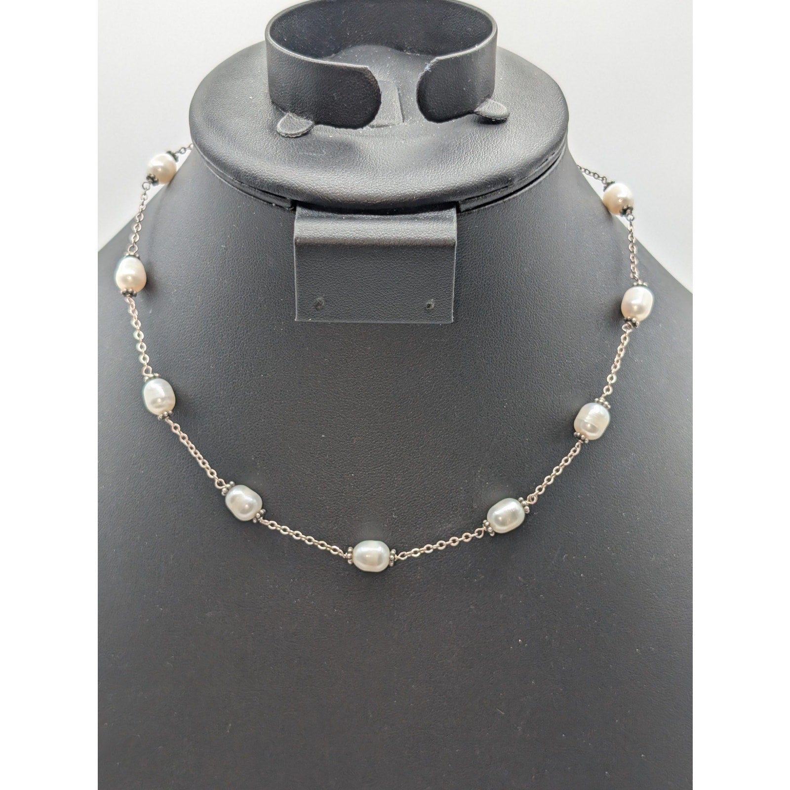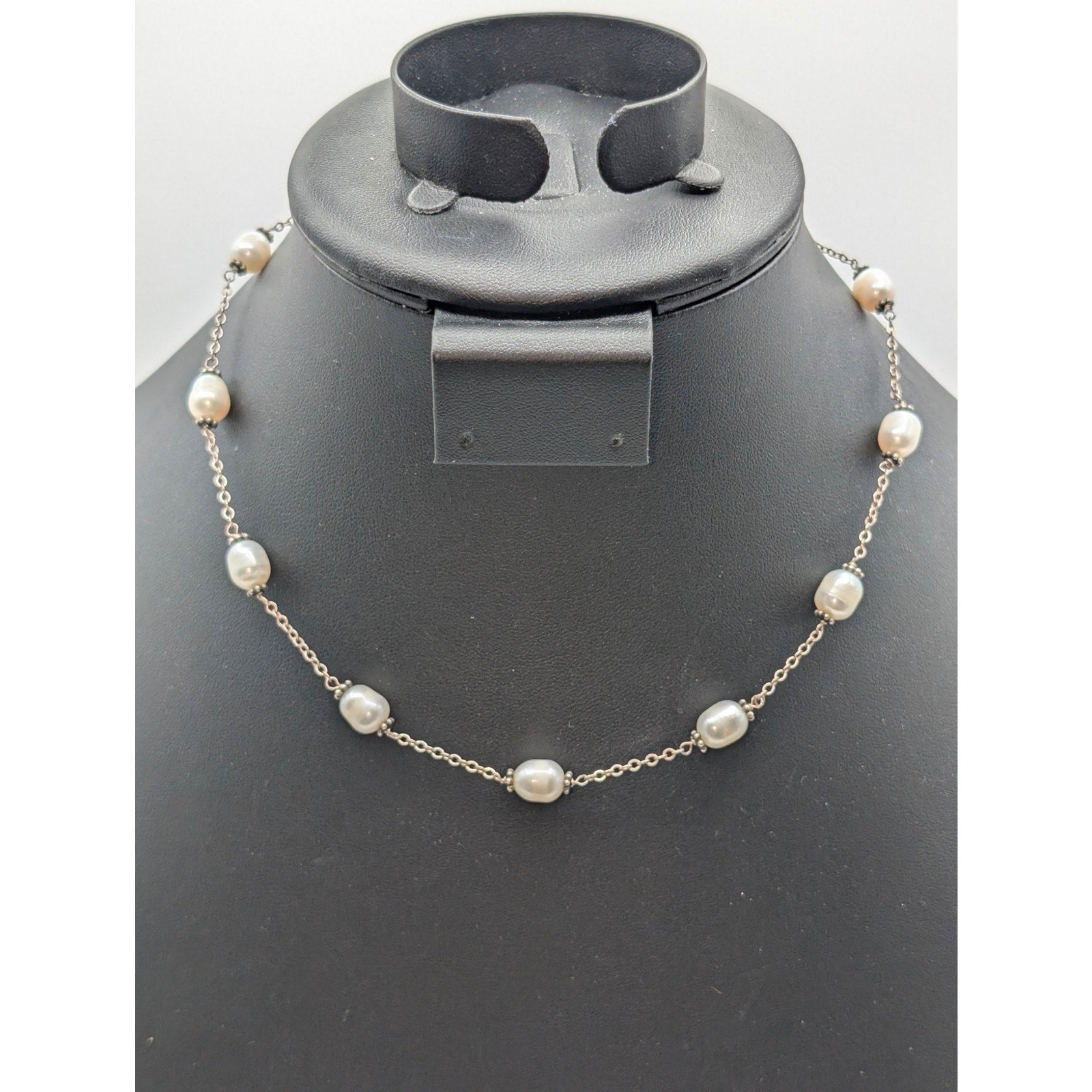 Vintage Genuine Freshwater Pearl Sterling Silver Chain Station 16" Necklace. Spring ring clasp. Pre-owned, this necklace is in excellent vintage condition. Most reasonable offers are accepted.