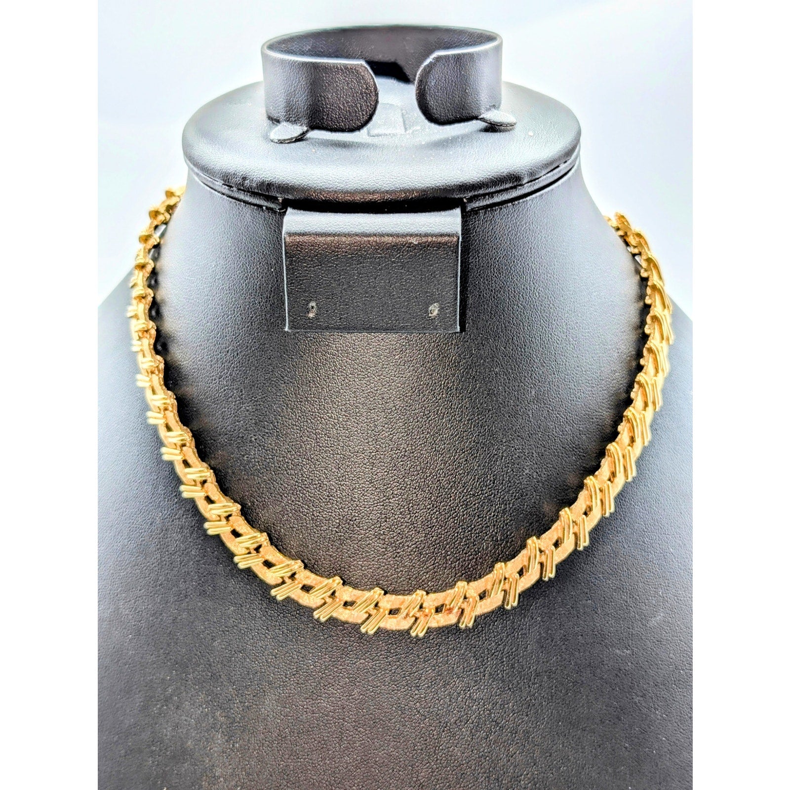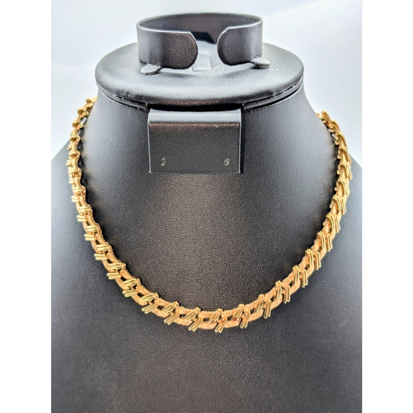 Vintage Gold Tone Textured Polished Basket Weave Chain Link Collar Necklace