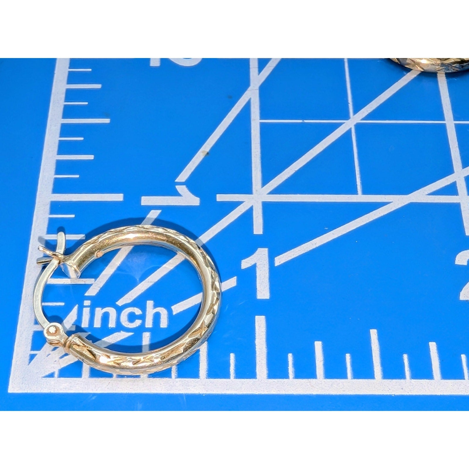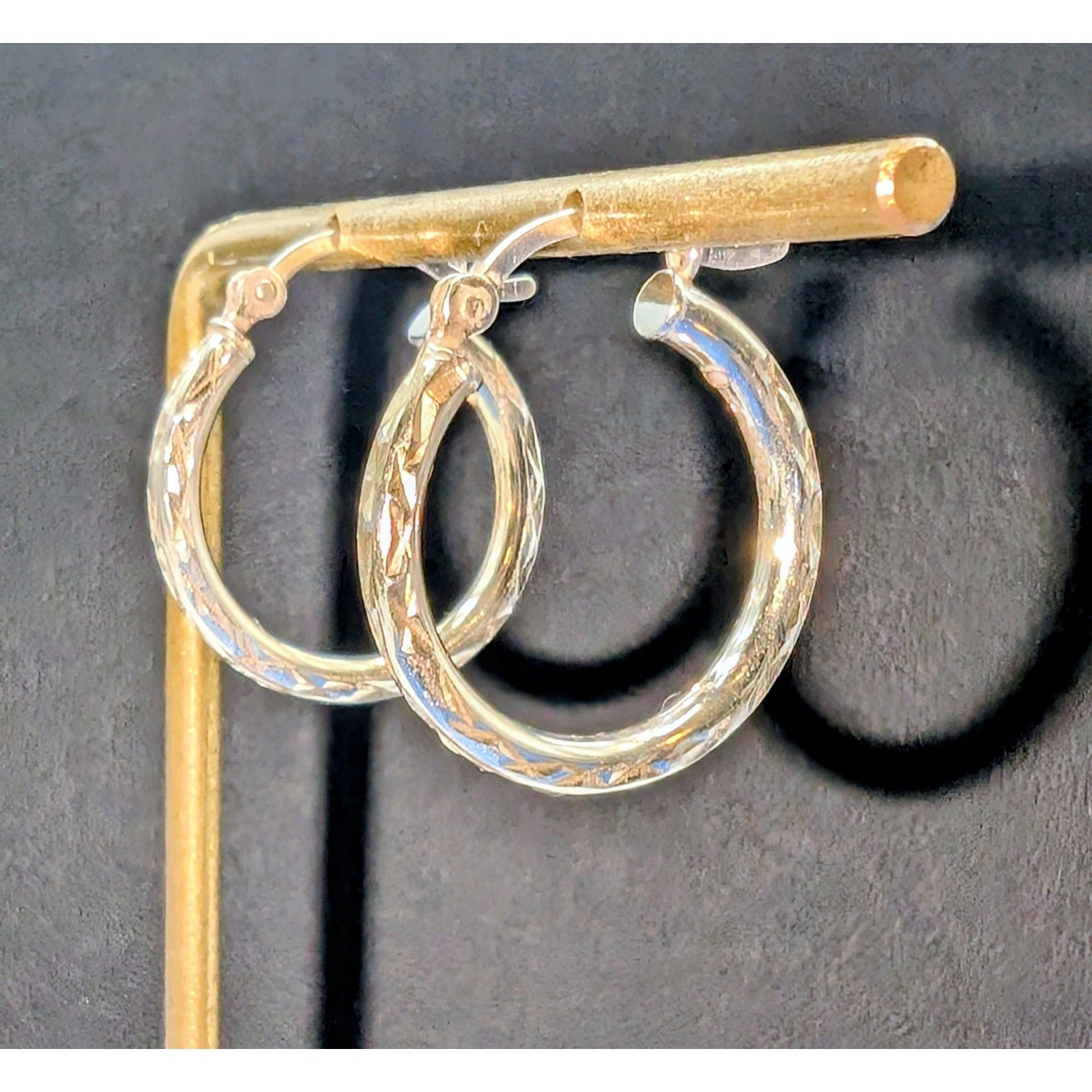 Vintage HAN 3/4" Sterling Silver Diamond Cut Hollow Hoop Pierced Earrings