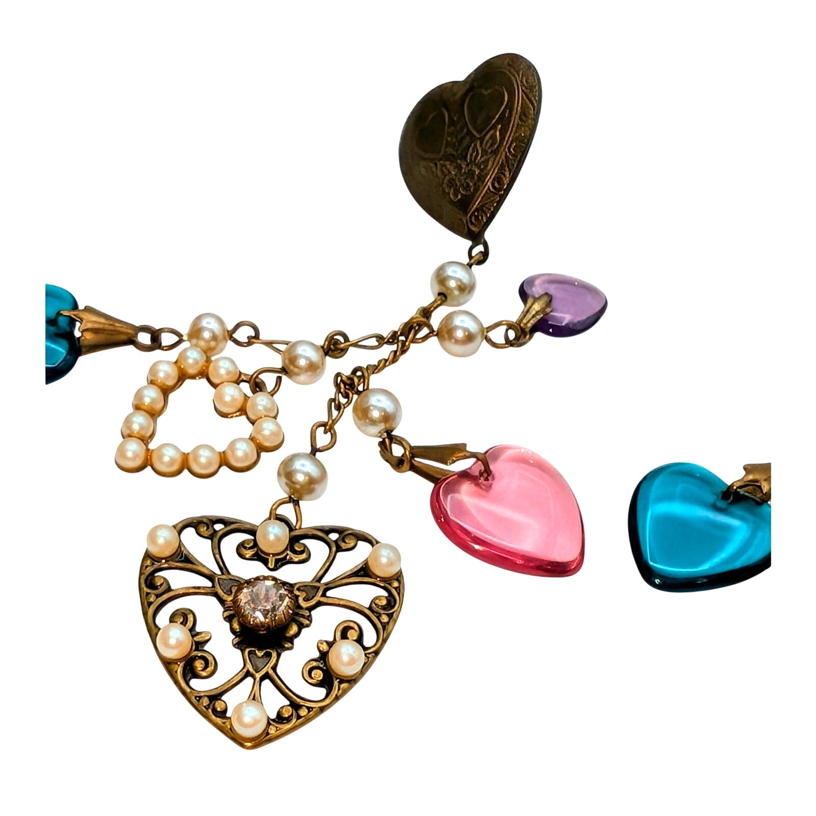 Vintage Heart Charm Faux Pearl Chandelier Dangle Earrings. Pre-owned, these fun earrings are in great vintage condition.
