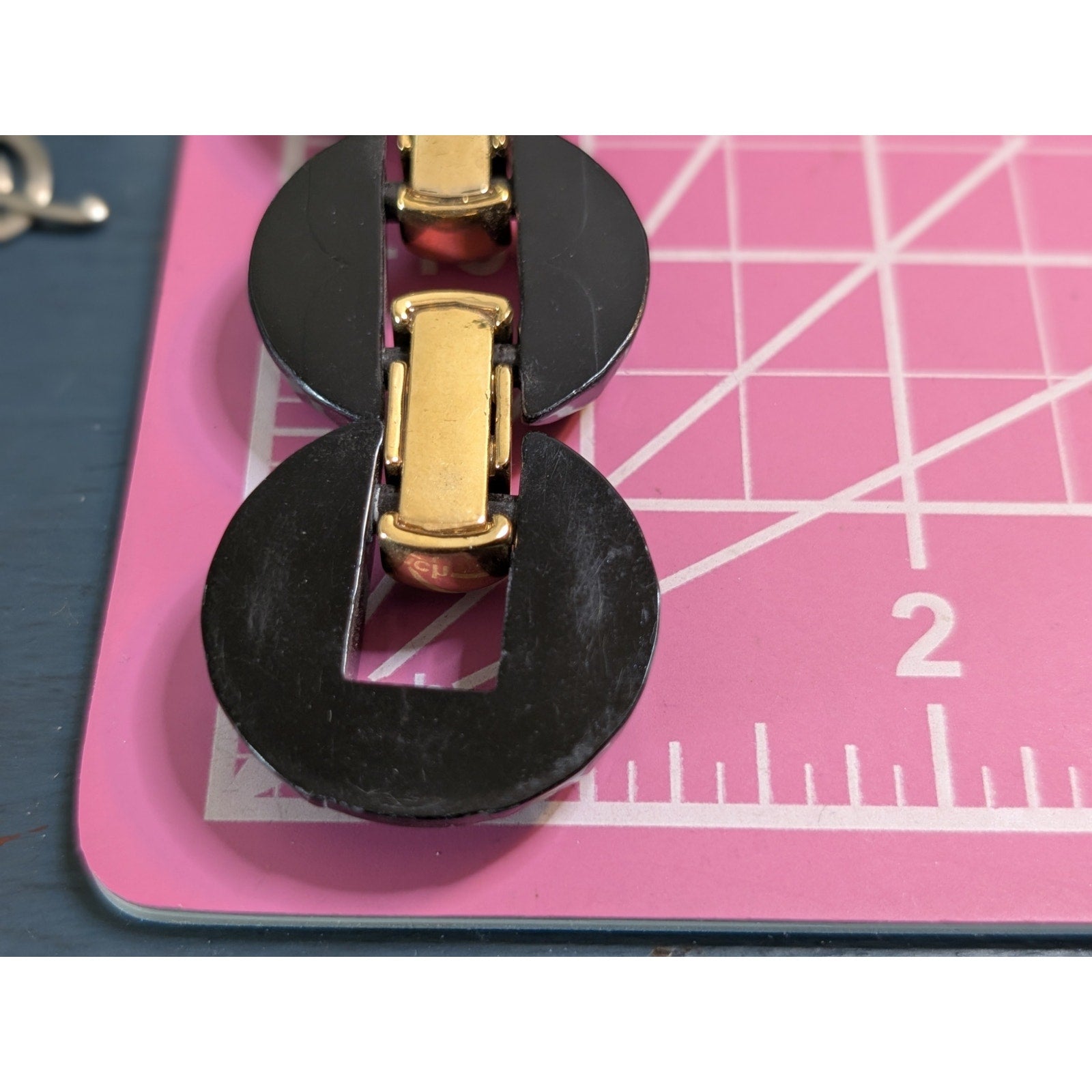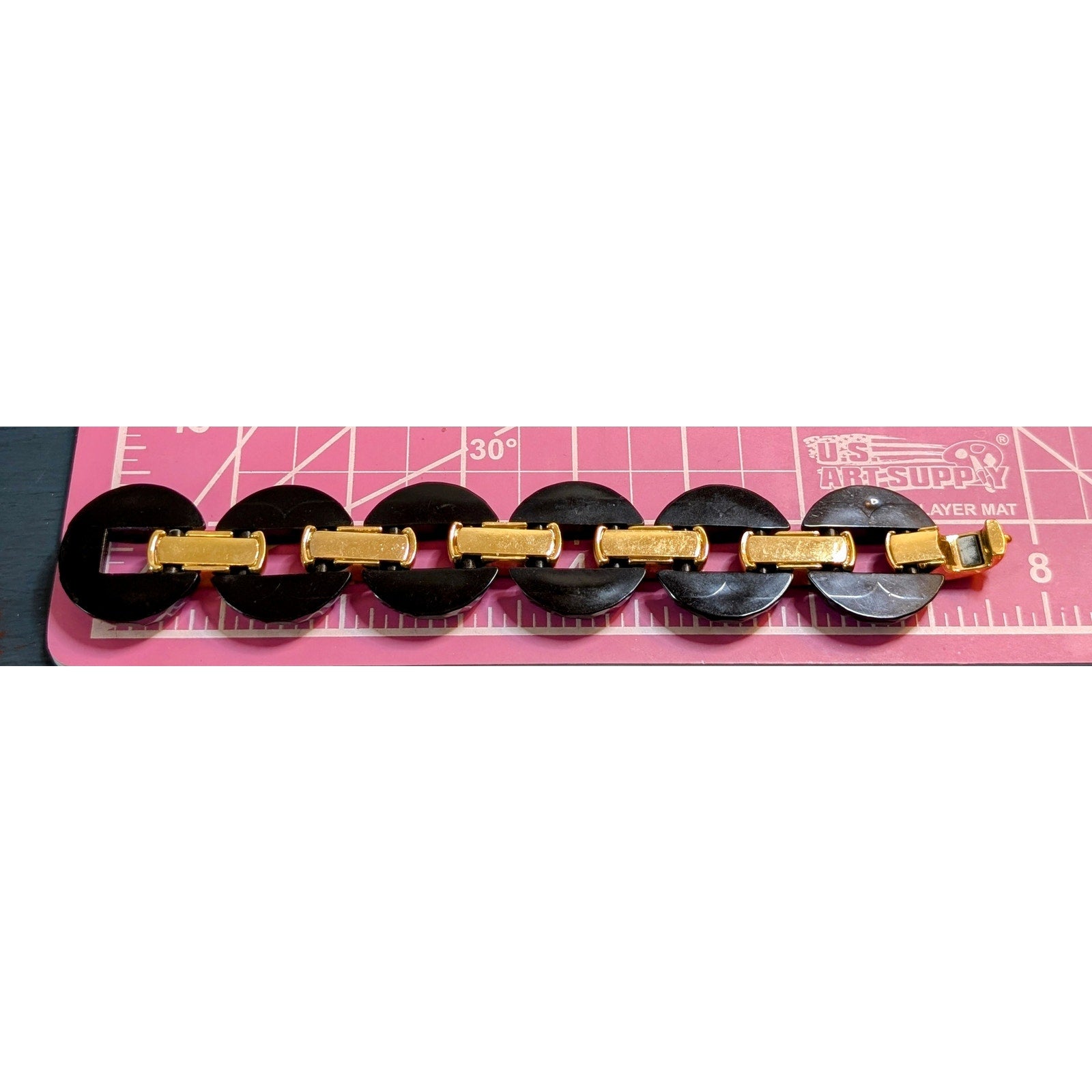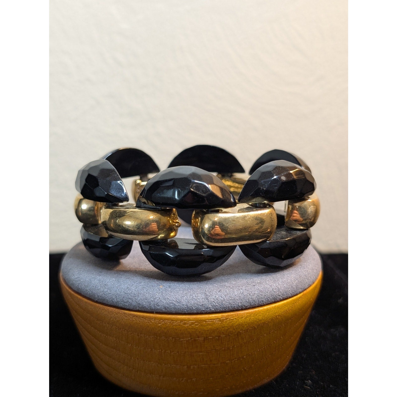 Vintage Italian Chunky Faceted Black Lucite Gold Tone Chain Link Bracelet