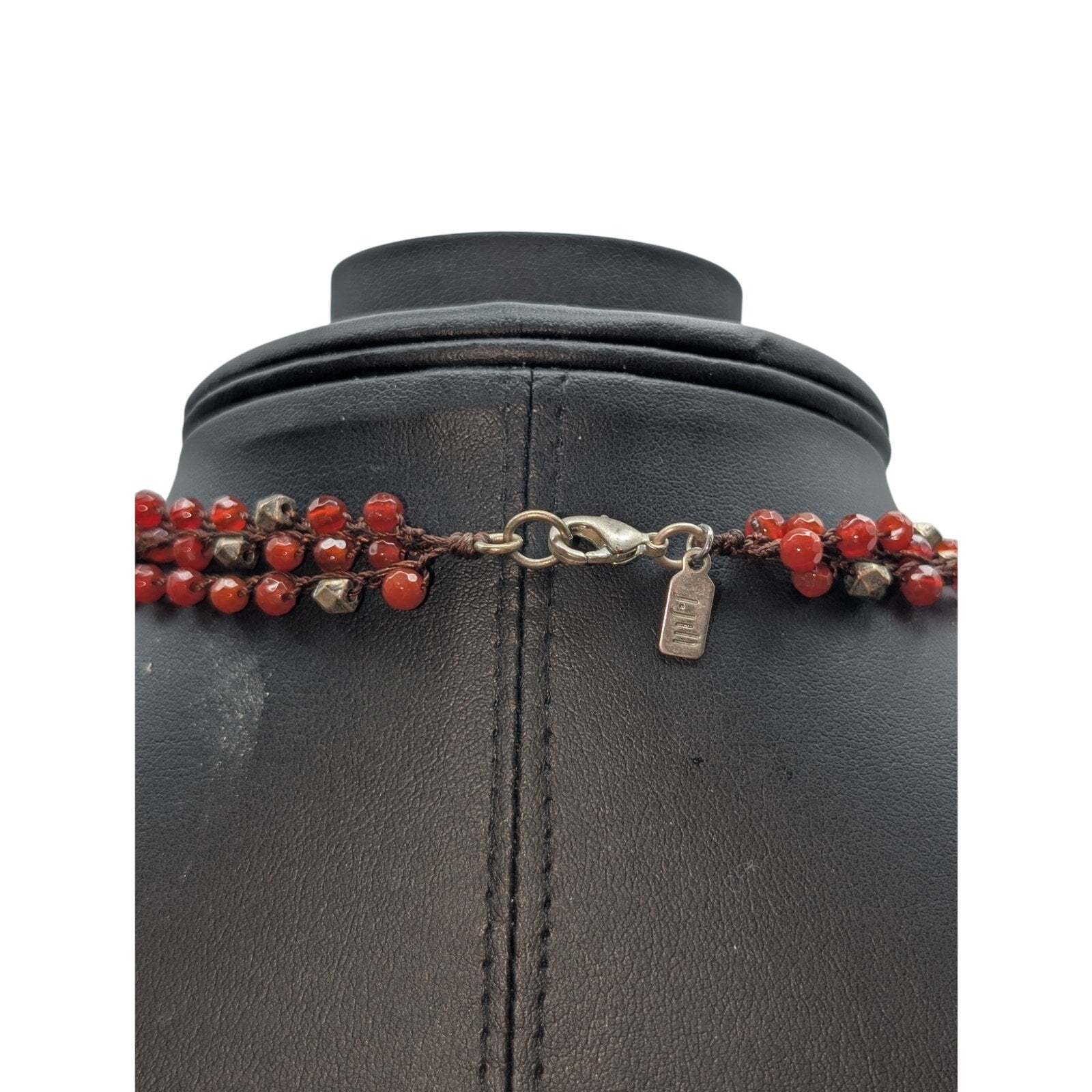 Vintage J. Jill 90s Carnelian Silver Tone Multi Strand Beaded Pendant Necklace