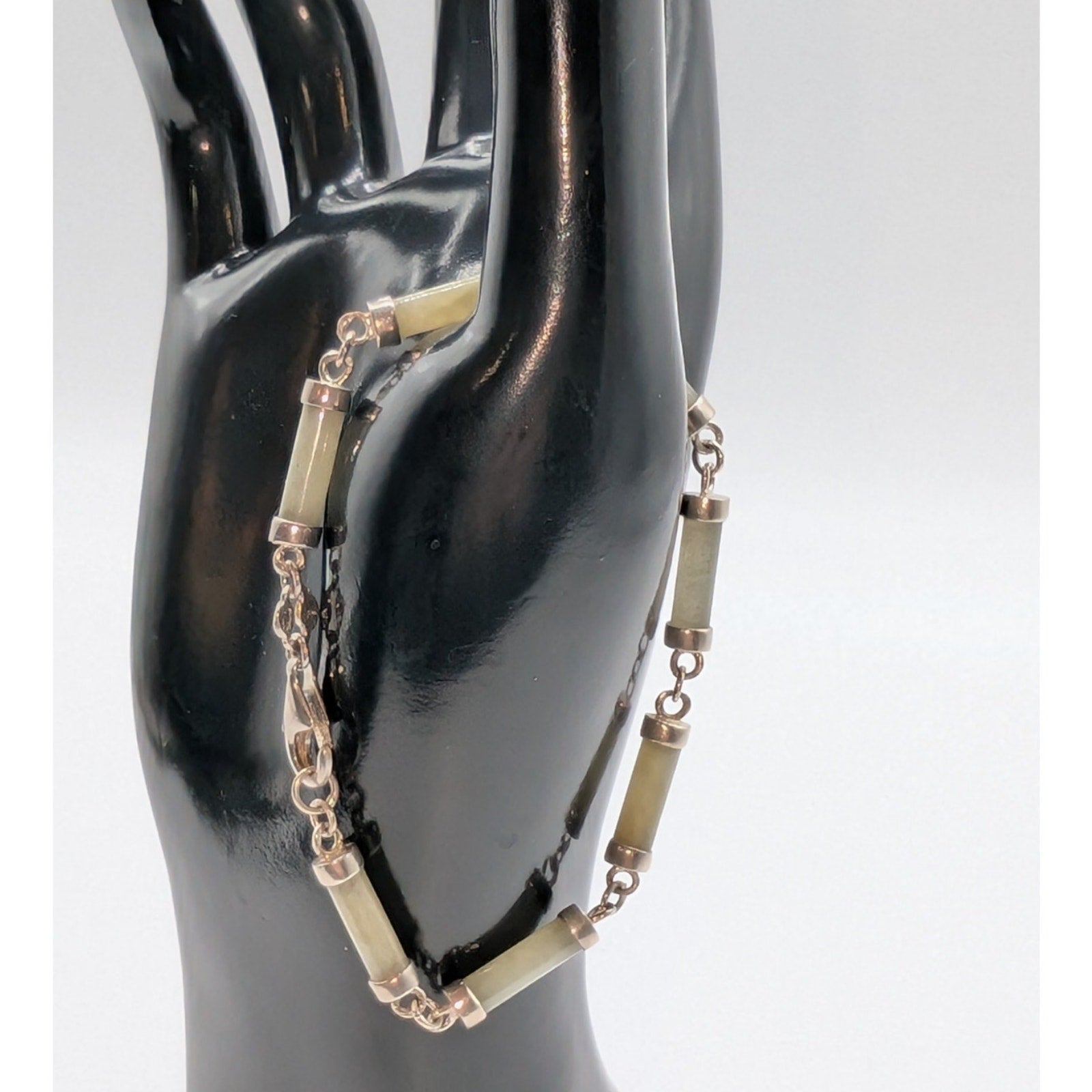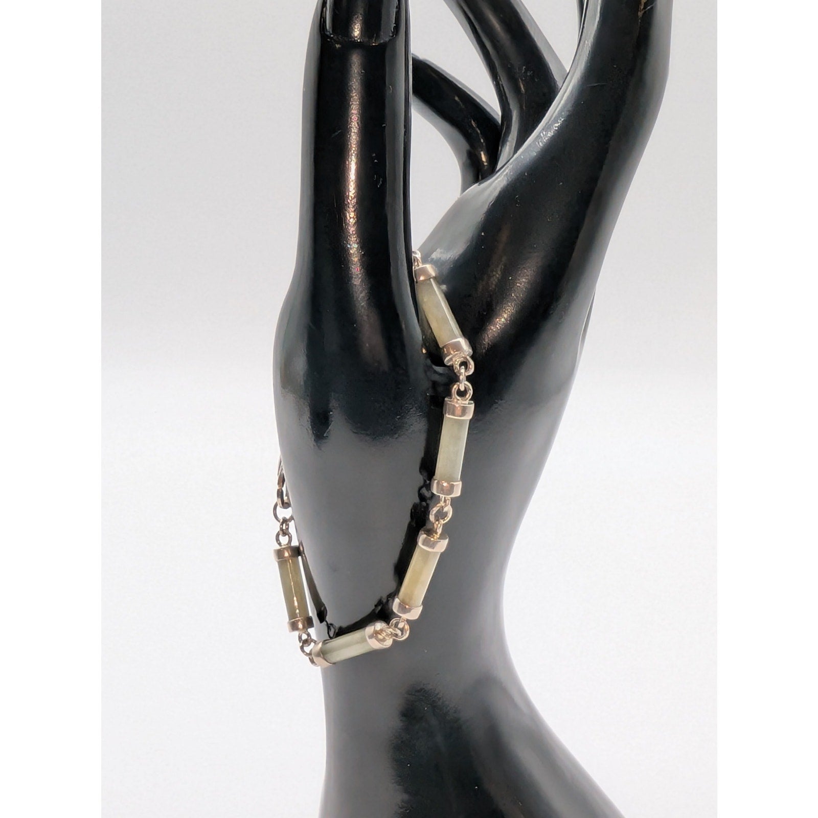 Vintage Jadeite 925 Sterling Silver Capped Link 7" Bracelet