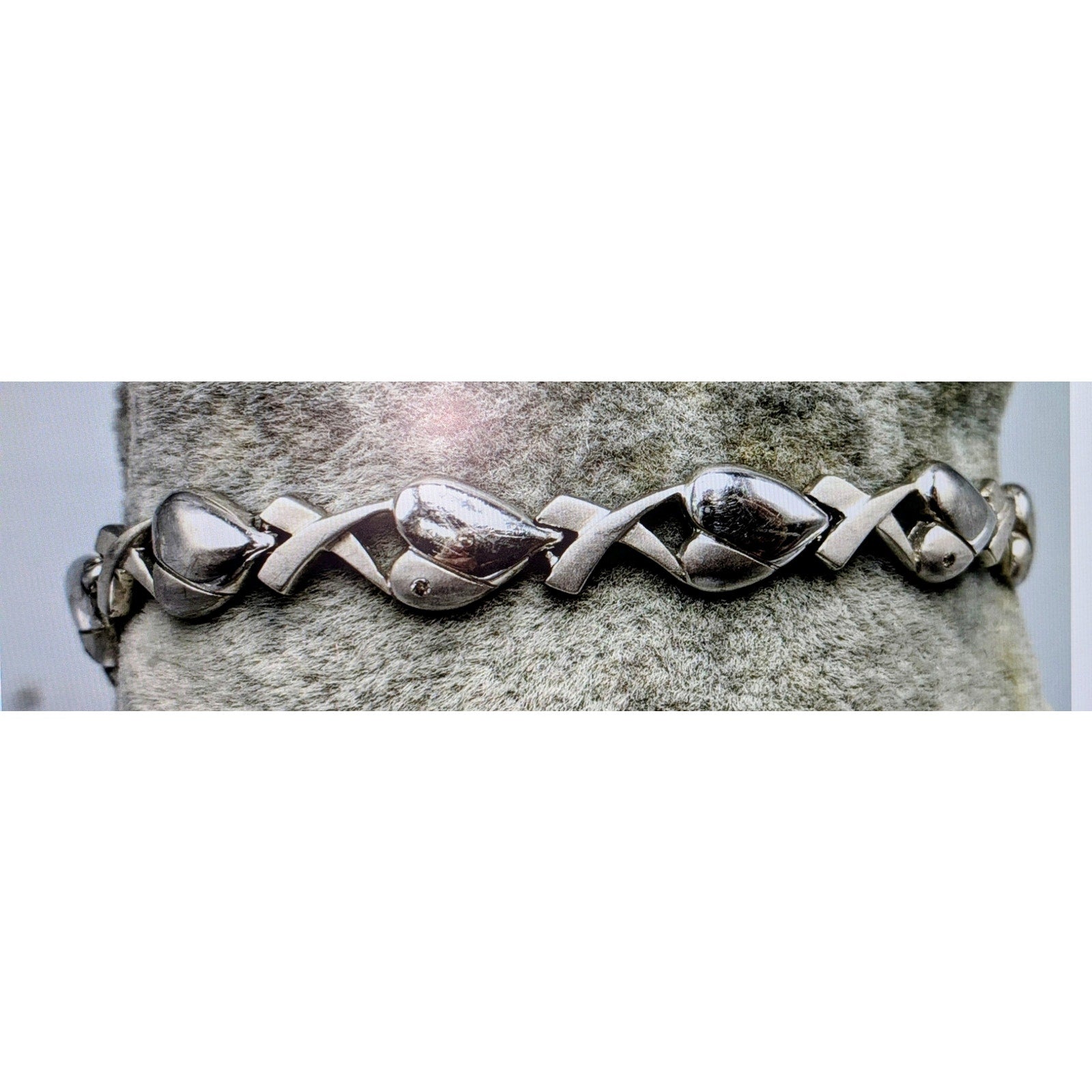 Vintage JC 925 Sterling Silver Diamond Accents Heart 'X' Link Bracelet 11.9g. Pre-owned, this bracelet is in excellent condition. Diamonds: less than 1mm.