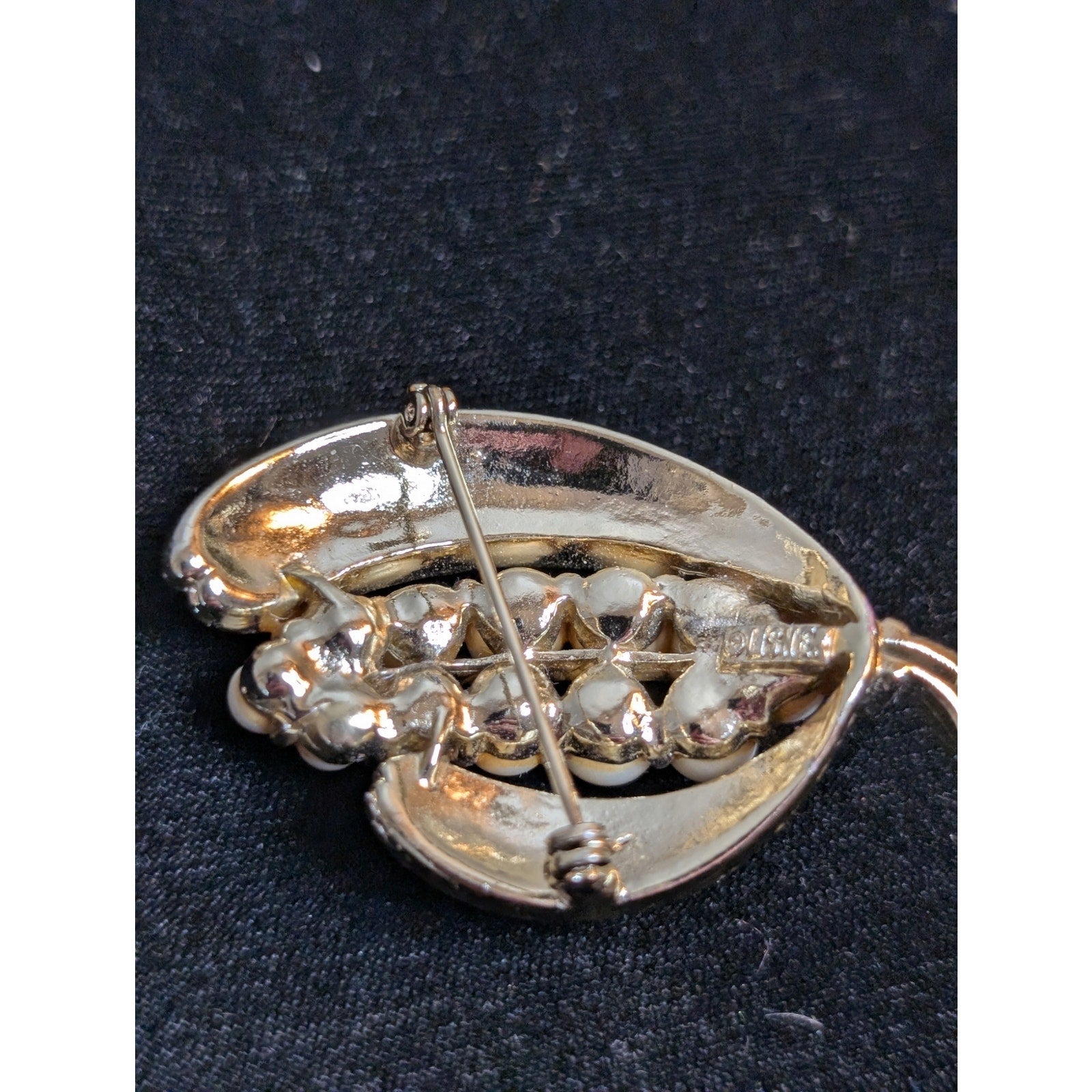 Vintage Lisner Brushed Gold Tone Faux Pearl Floral Spray Brooch. Pre-owned, this brooch is in good vintage condition.