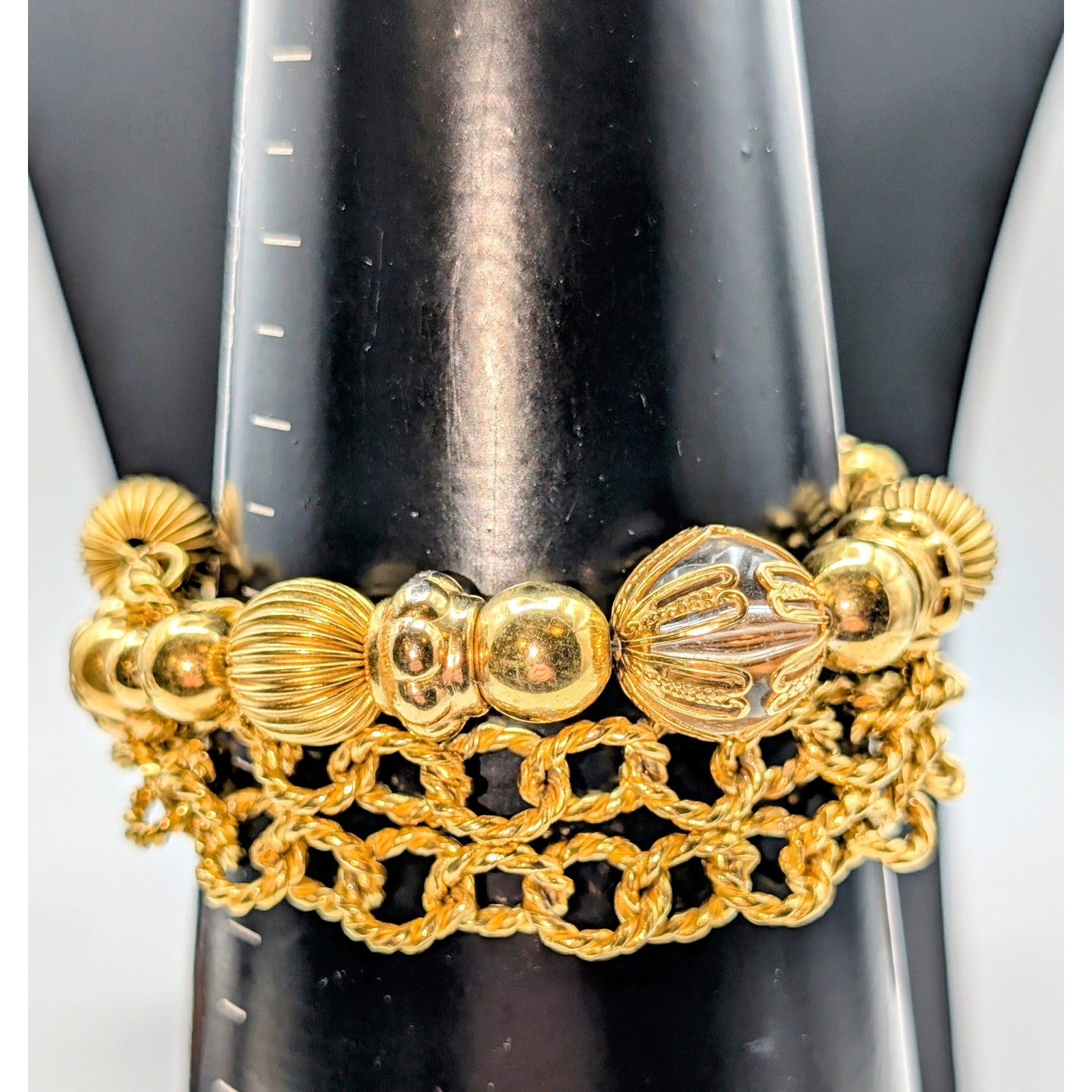 Vintage Liz Claiborne Triple Strand Gold Tone Chain & Beaded Bracelet