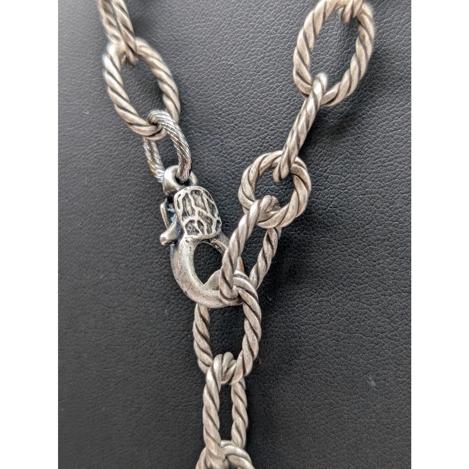 Vintage Long Silver Tone Chain Three Large Clear Lucite Fob Dangle Necklace. Can be adjusted to different lengths with decorative clasp. Pre-owned, this necklace is in great vintage condition.