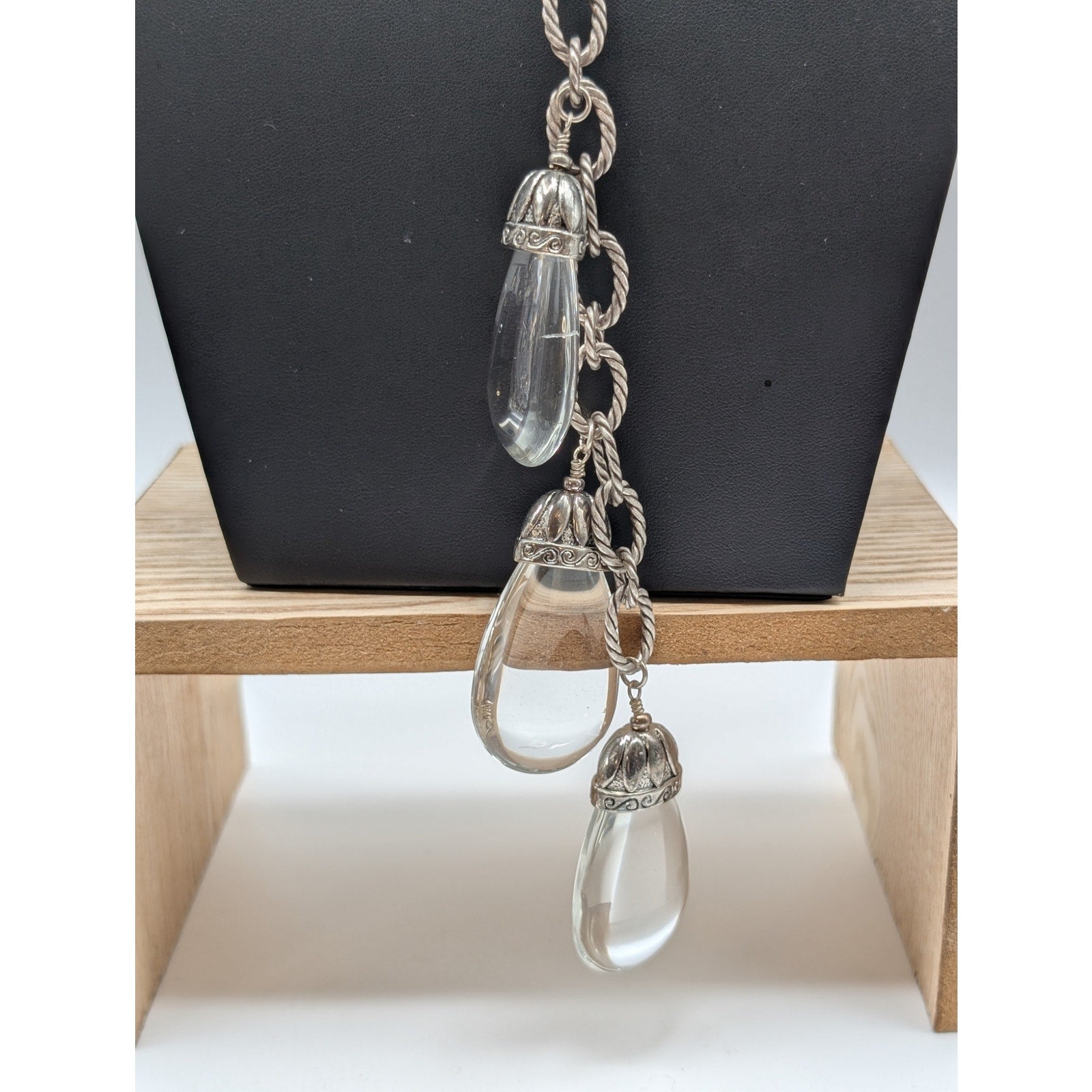 Vintage Long Silver Tone Chain Three Large Clear Lucite Fob Dangle Necklace