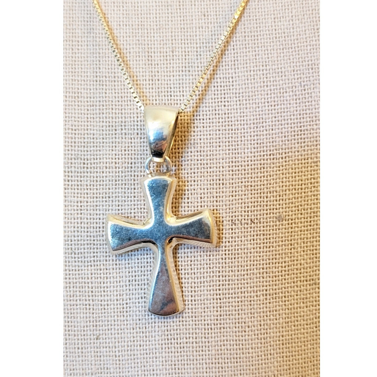 Vintage LRB Sterling Large Bale Pendant on Sterling Silver 18" Box Chain. Cross measures (including bale) 1-58" long and 7/8" wide. Solid. Large enough bale to go on some of your collars or omegas. Pre-owned, this cross is in excellent condition. Unisex.