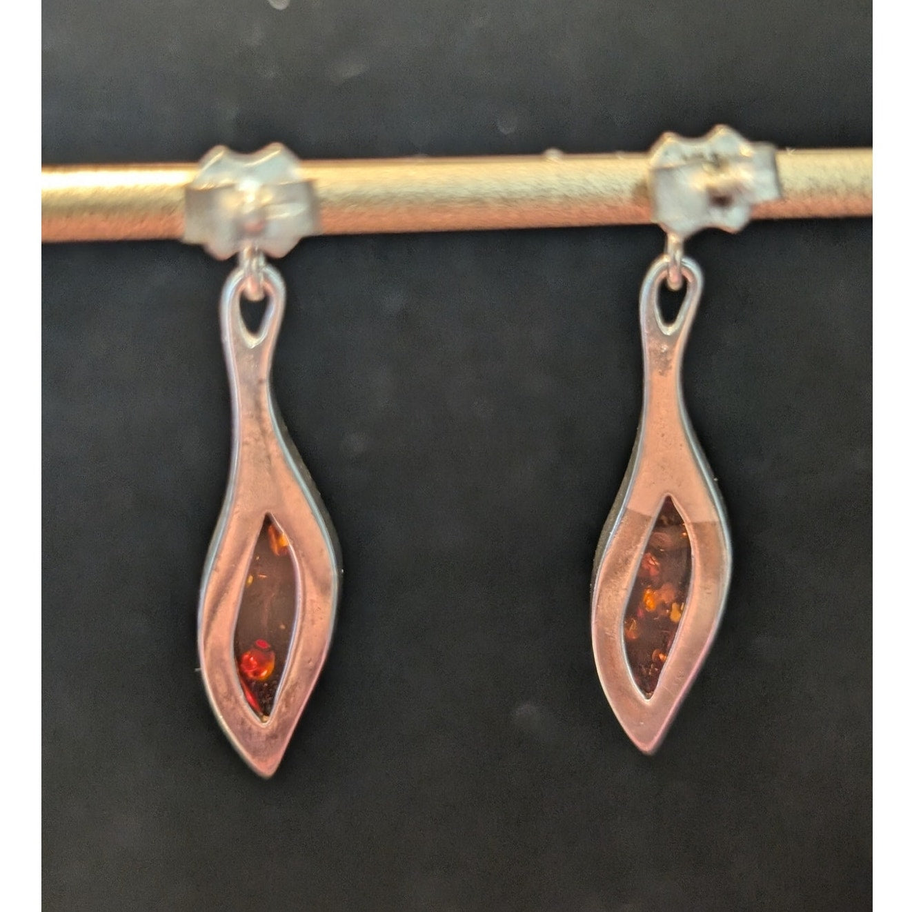 Vintage Marked 925 Sterling Silver Baltic Amber Post Dangle Earrings. Pre-owned, these earrings are in excellent vintage condition.
