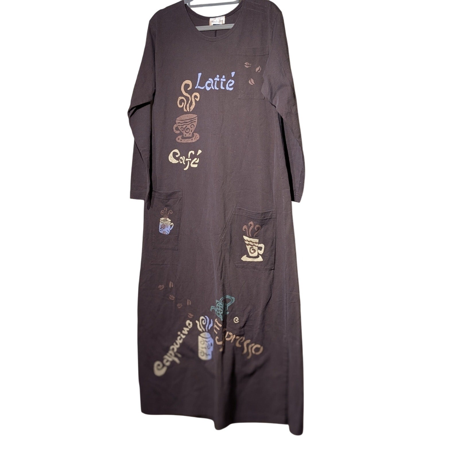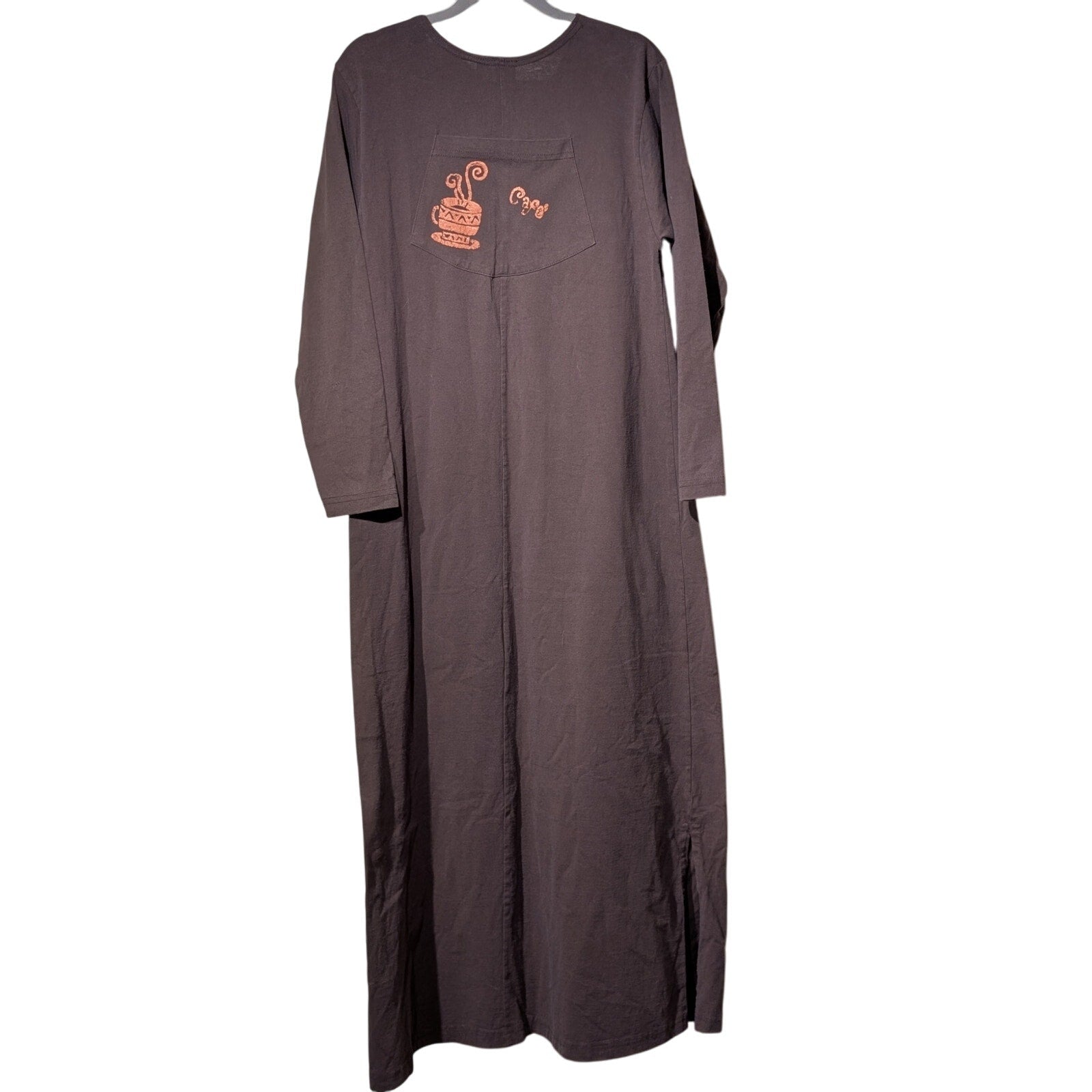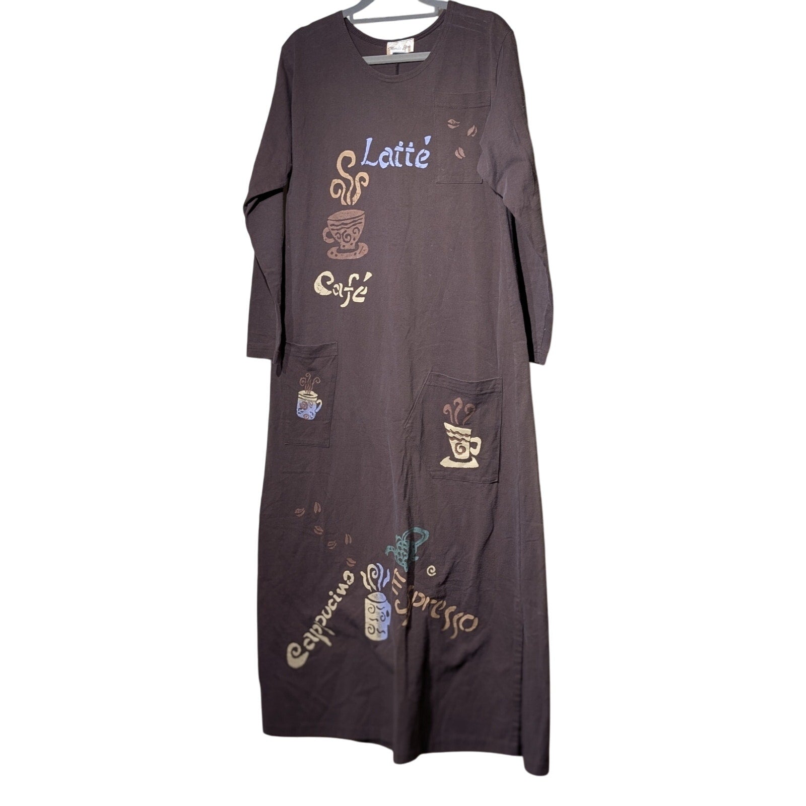 Vintage Mondo Lira 100% Cotton Brown Wearable Art Pocketed Coffee Kaftan Sz S