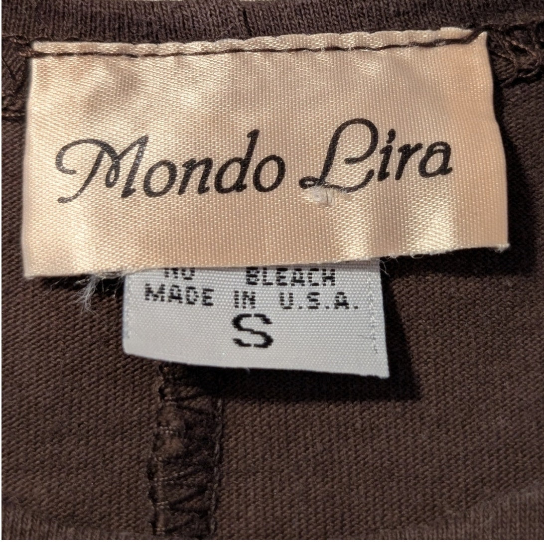Vintage Mondo Lira 100% Cotton Brown Wearable Art Pocketed Coffee Muumuu Kaftan Sz S. Pockets everywhere, even on the back. Slit on the side bottom in the front and on the opposite side bottom on back. Pre-owned, this wearable art piece is in excellent condition. Measures 52" long from back.