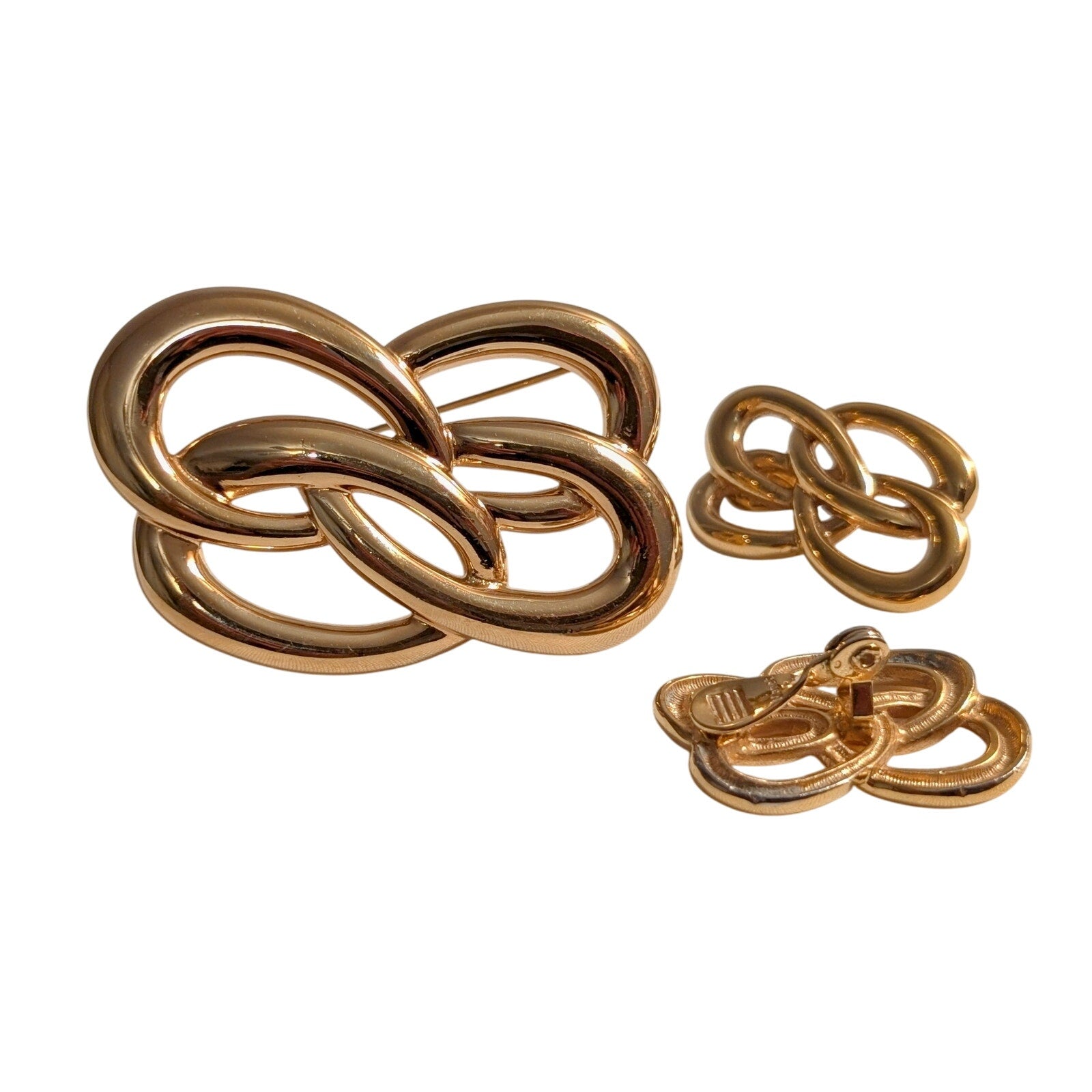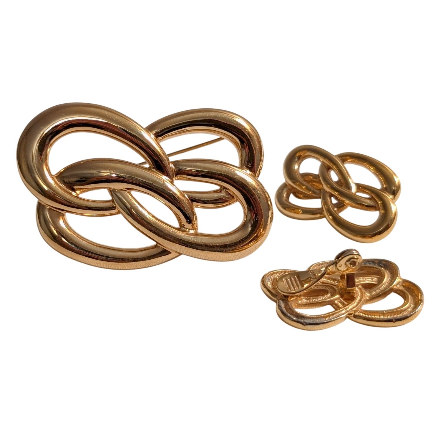 Vintage Monet Three Piece Gold Tone Brooch & Clip On Earring Jewelry Set