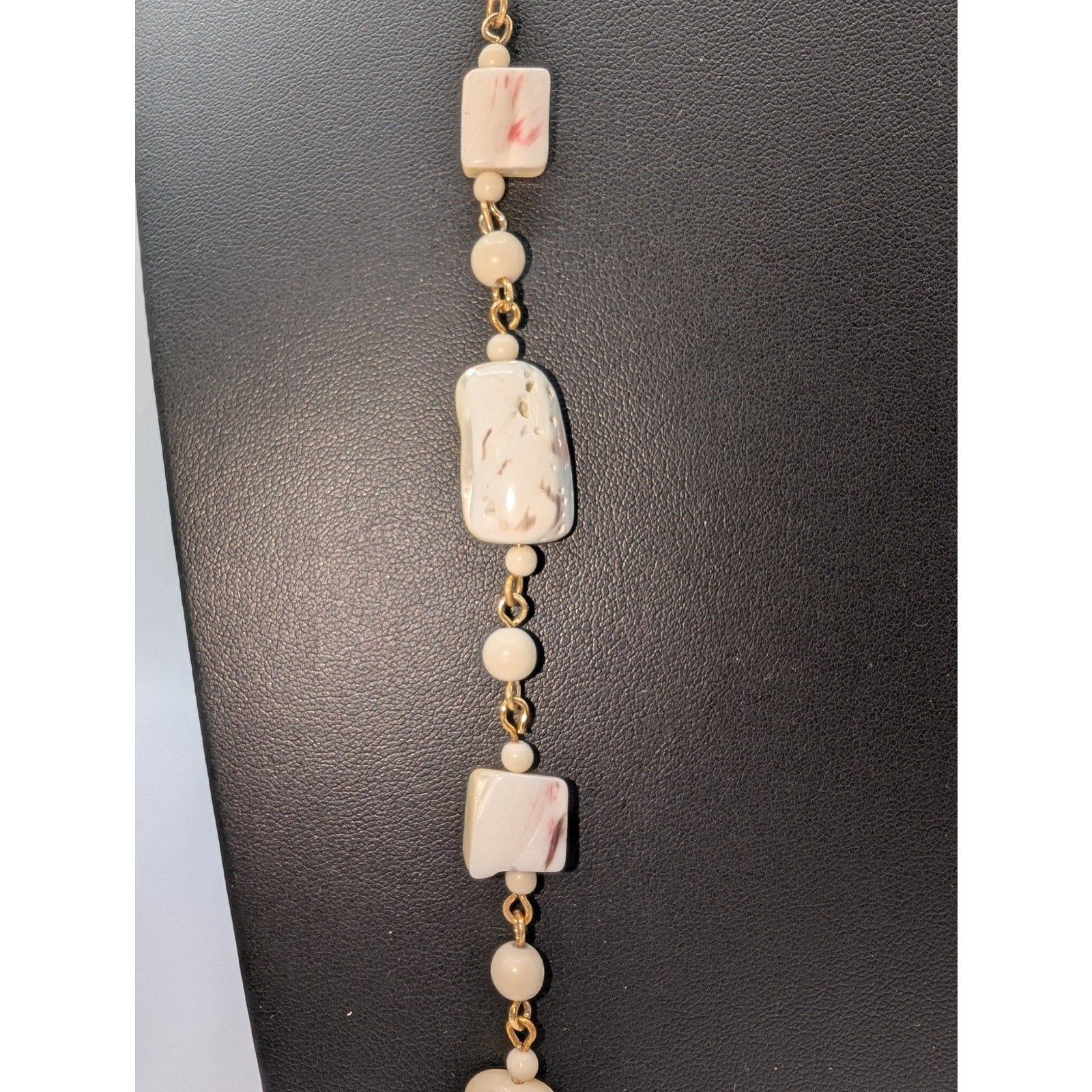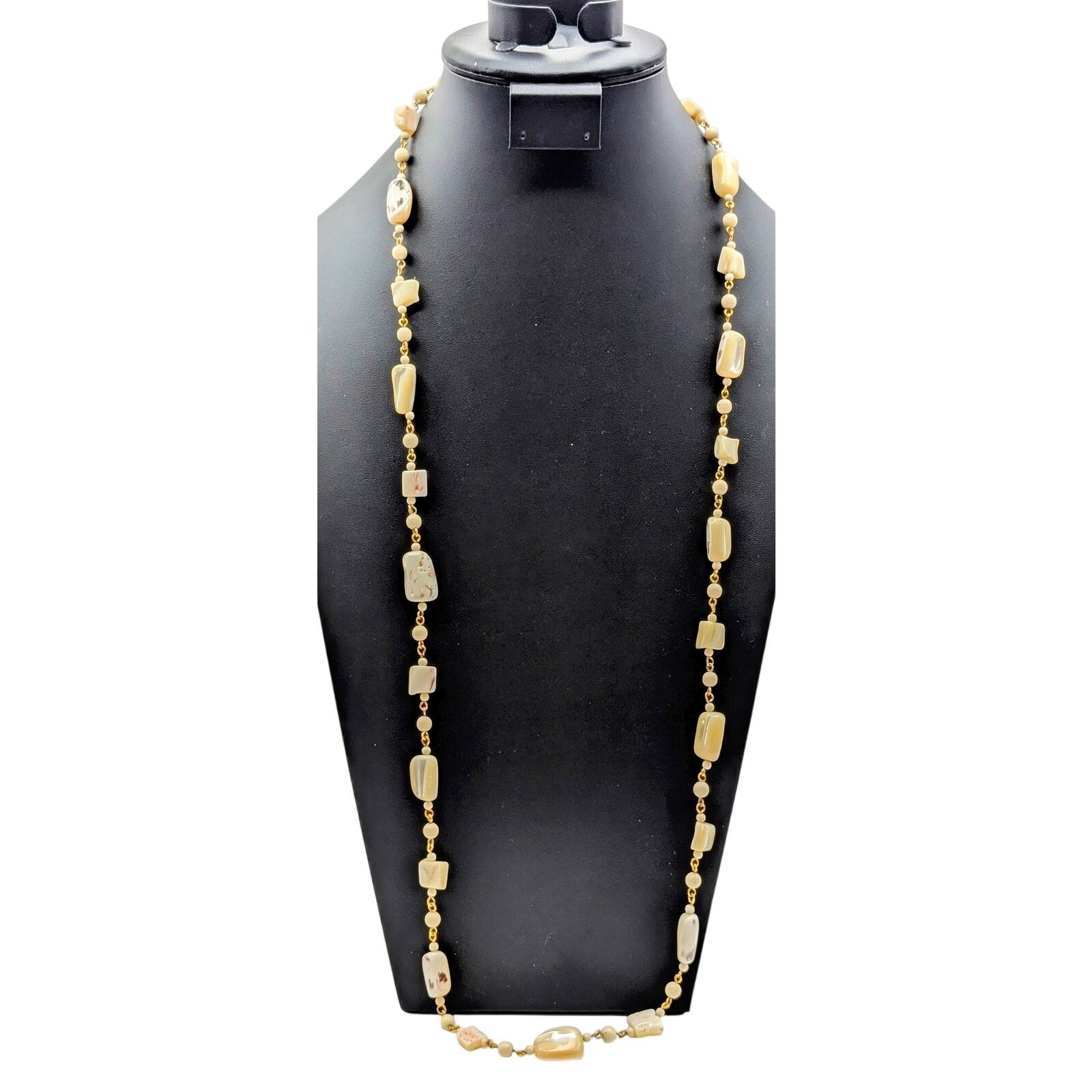 Vintage Mother of Pearl Beaded Chain 38" Necklace. Pre-owned, this necklace is in excellent condition.