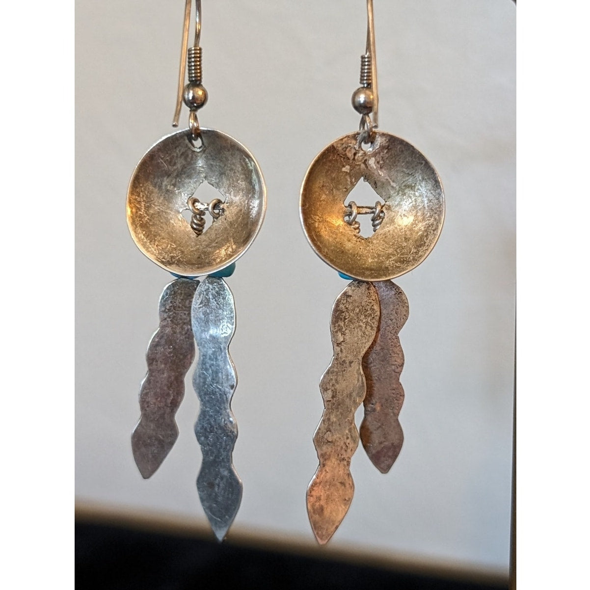 Vintage Native American Navajo Concho Turquoise Bead Feather Dangle Earrings