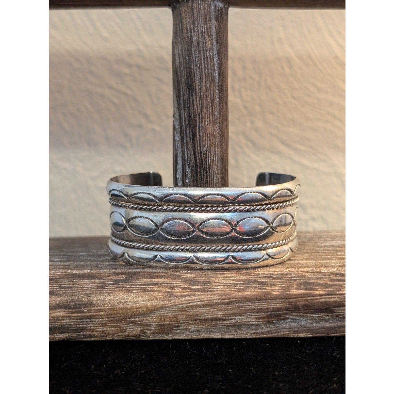 Vintage Native American Style 925 Sterling Silver 1" Wide Cuff Bracelet