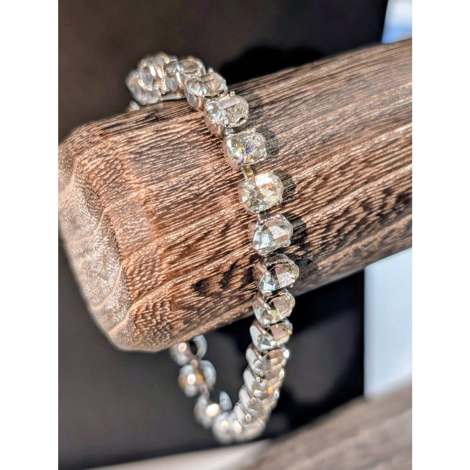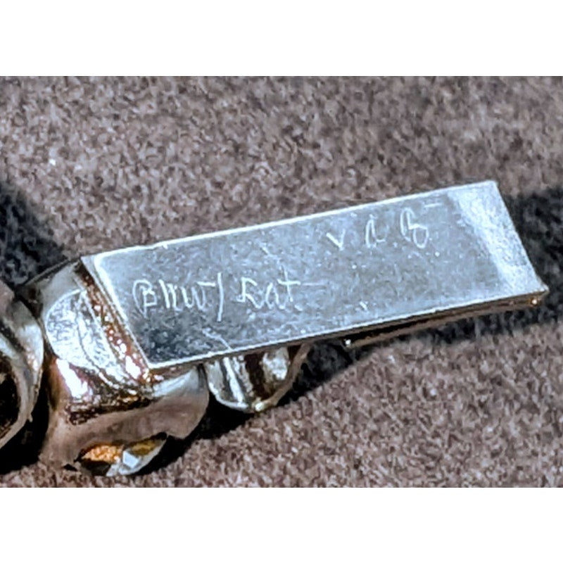 Vintage Oval Rhinestone Tennis Bracelet W/ Hand Signed Clasp. Pre-owned, this bracelet is in great vintage condition. The clasp is a little tricky. You have to make sure you are holding down the release and slide it in the whole way to ensure that it is secure. You might want to have it adjusted. I can't find who the signature belongs to.