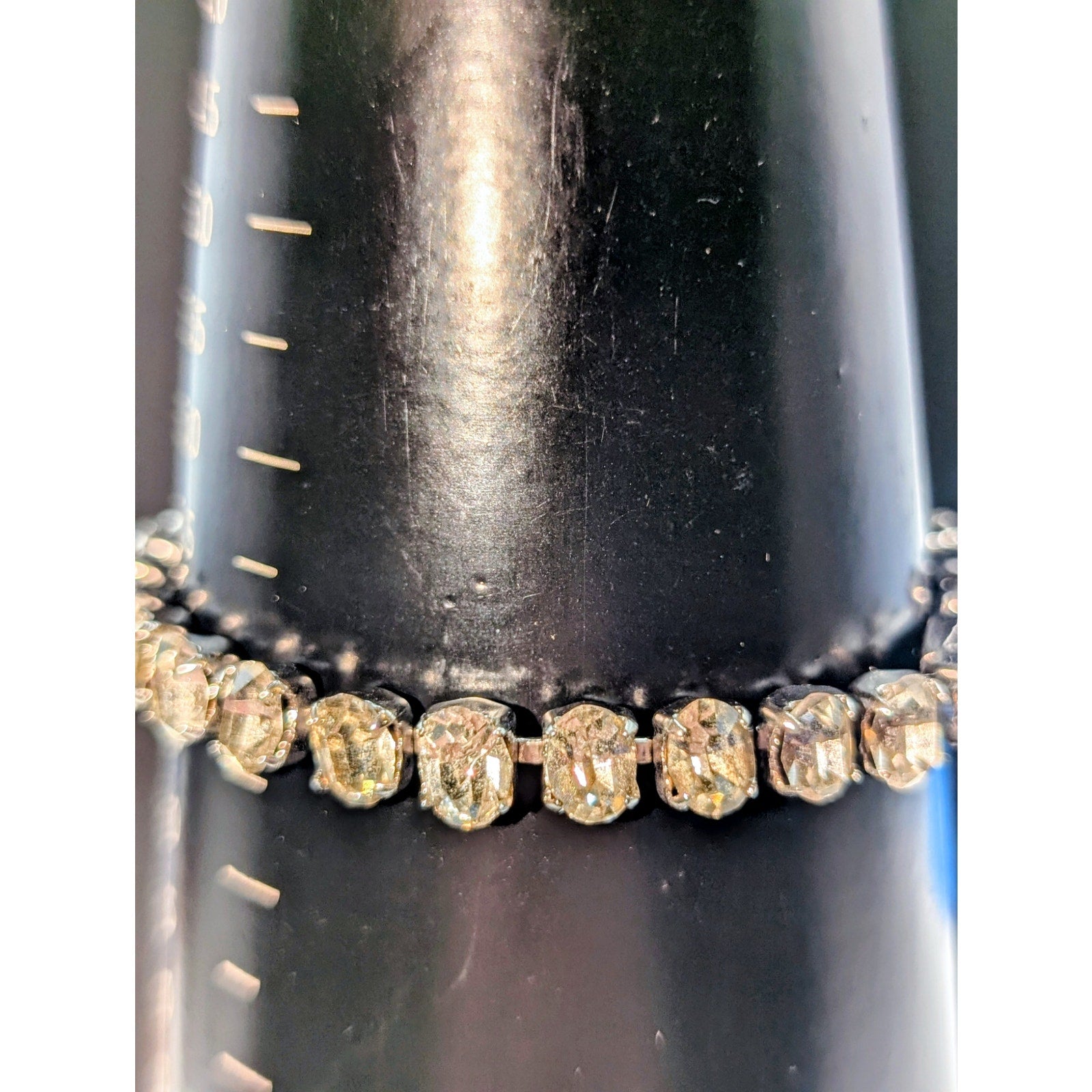 Vintage Oval Rhinestone Tennis Bracelet W/ Hand Signed Clasp