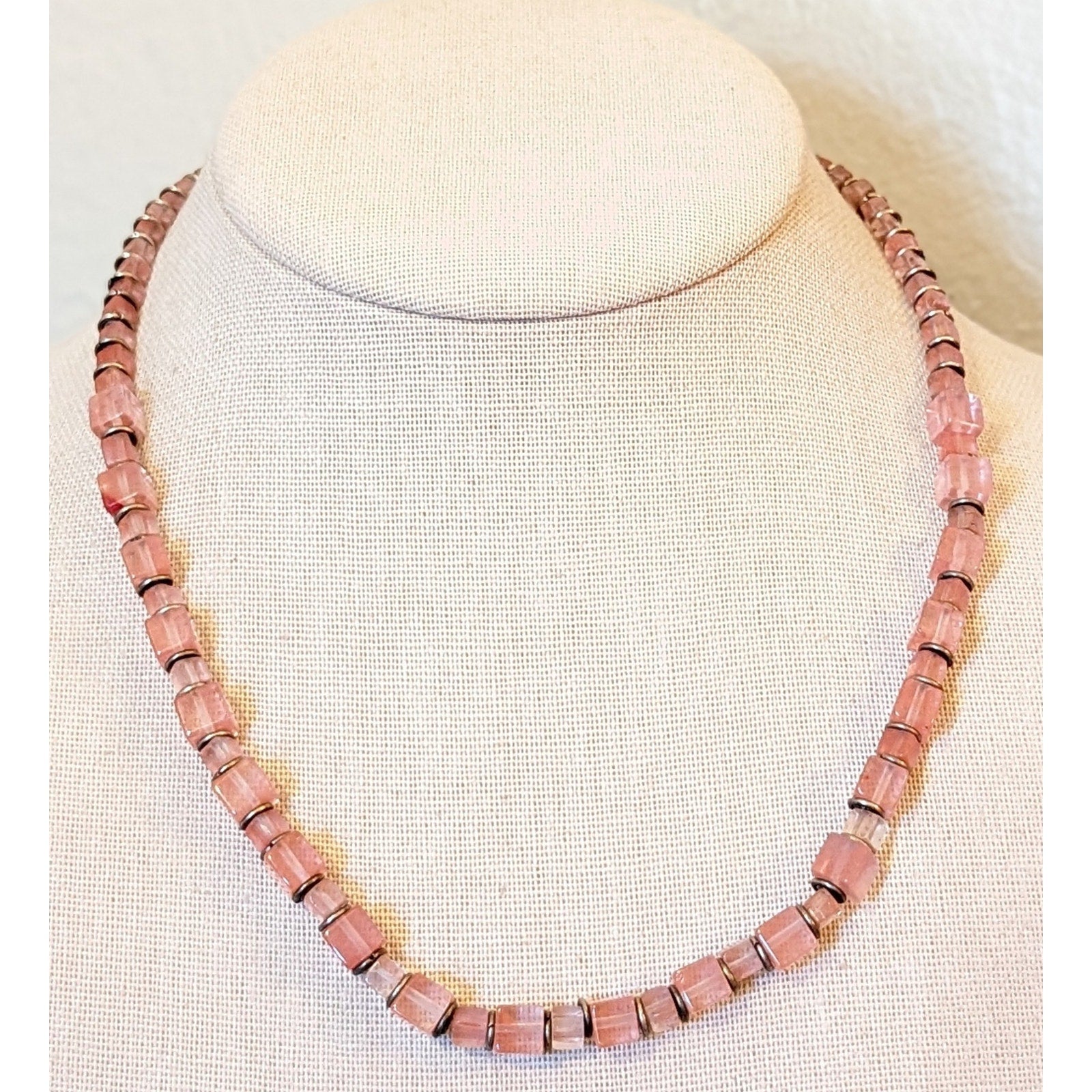 Vintage Pink Square Glass Bead Sterling Silver 17" Necklace. Pre-owned, this lovely necklace is in good condition.