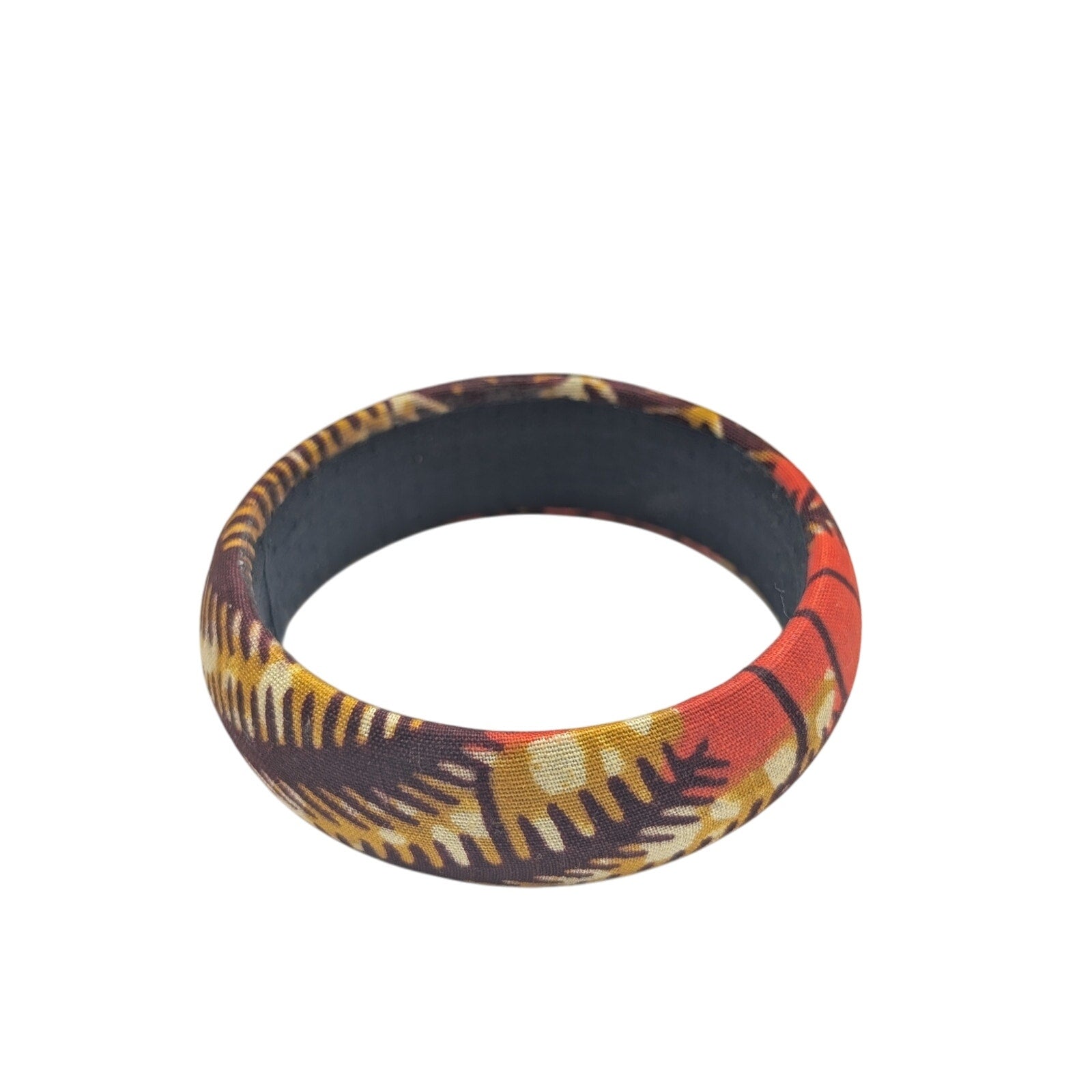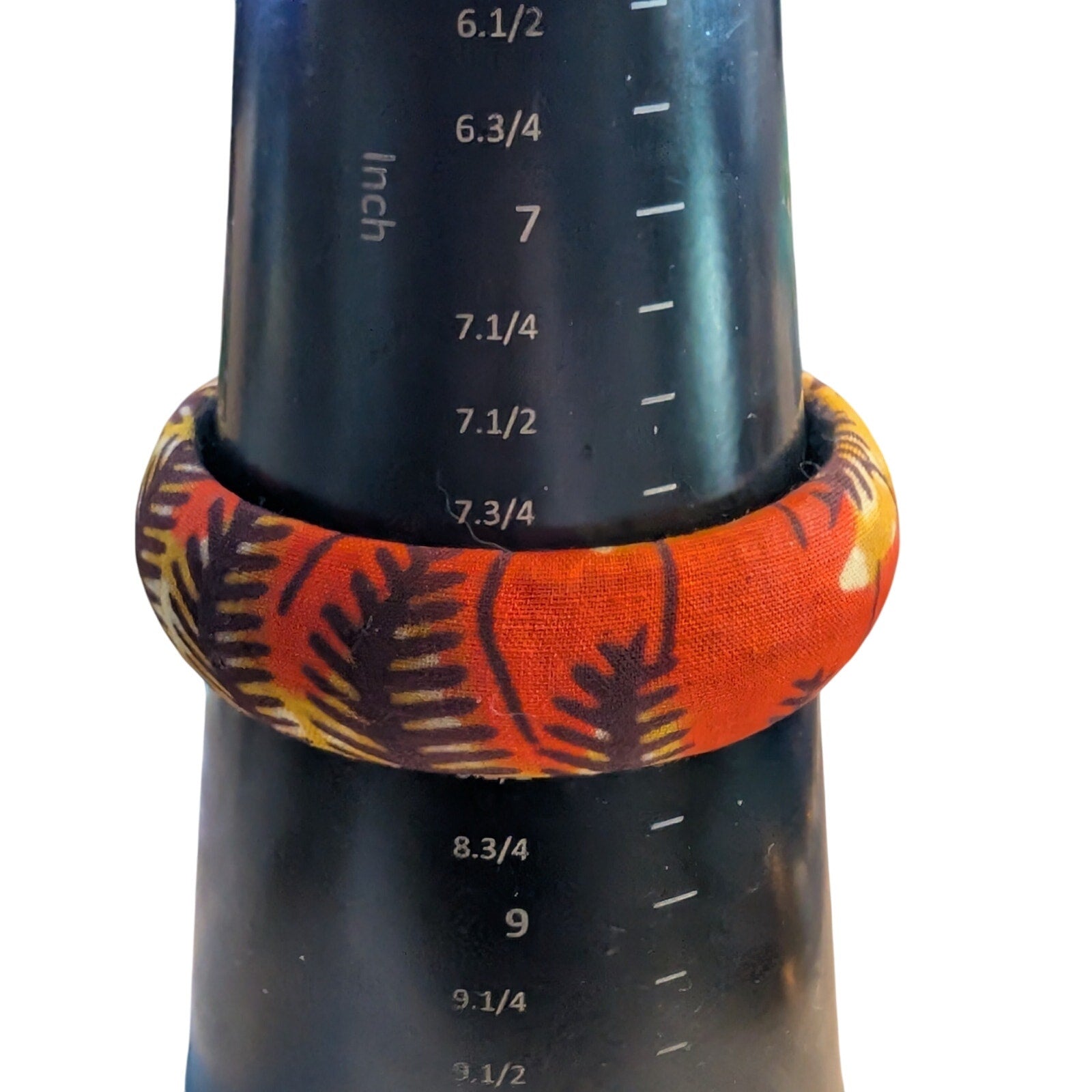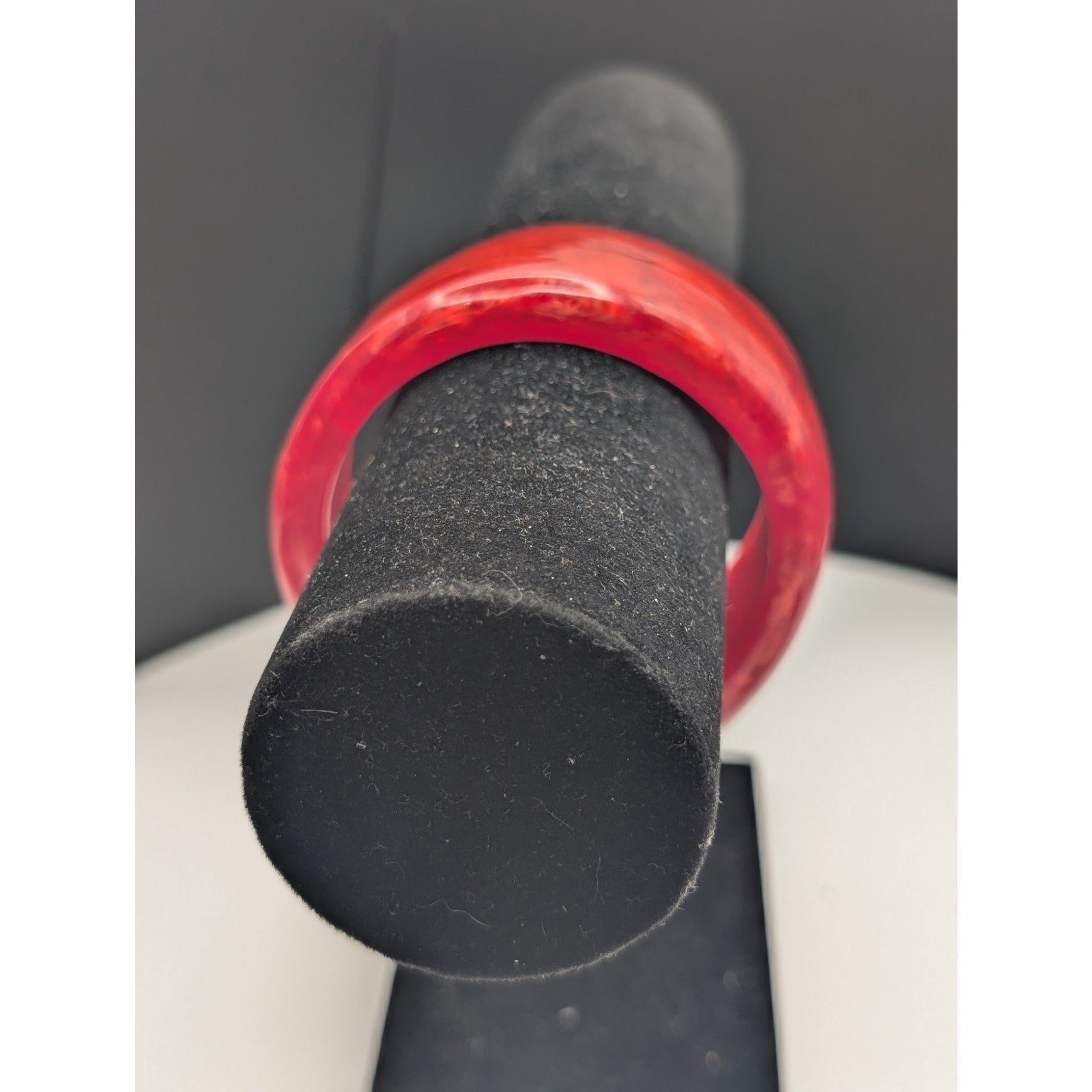 Vintage Red/Orange Marbled Possibly Bakelite Bangle Bracelet Plus One. Heavy, clunky bangle bracelet excellent pre-owned condition. One fabric coordinating bangle thrown in.
