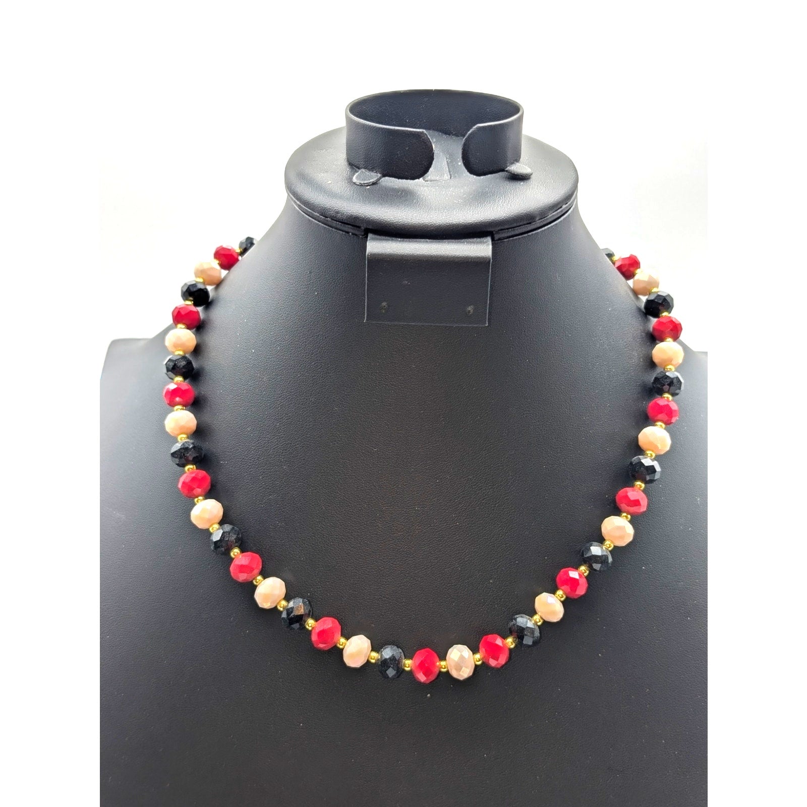 Vintage Red White Black Glass Czech Faceted Bead Gold Tone Bead 20.5" Necklace. Pre-owned, this necklace is in excellent condition. Silver tone barrel clasp.