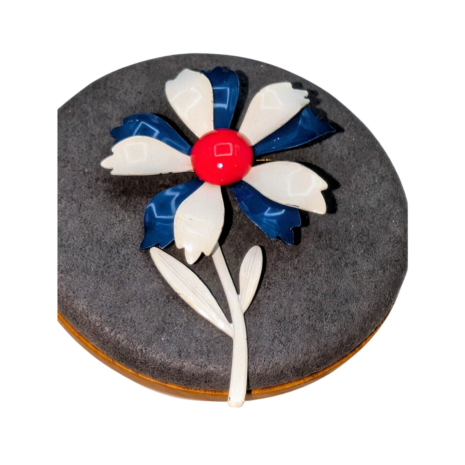 Vintage Red White Blue Enamel Flower Brooch. Pre-owned, this brooch is in excellent vintage condition.