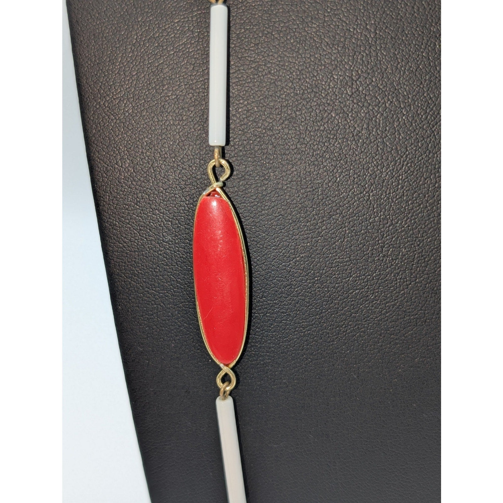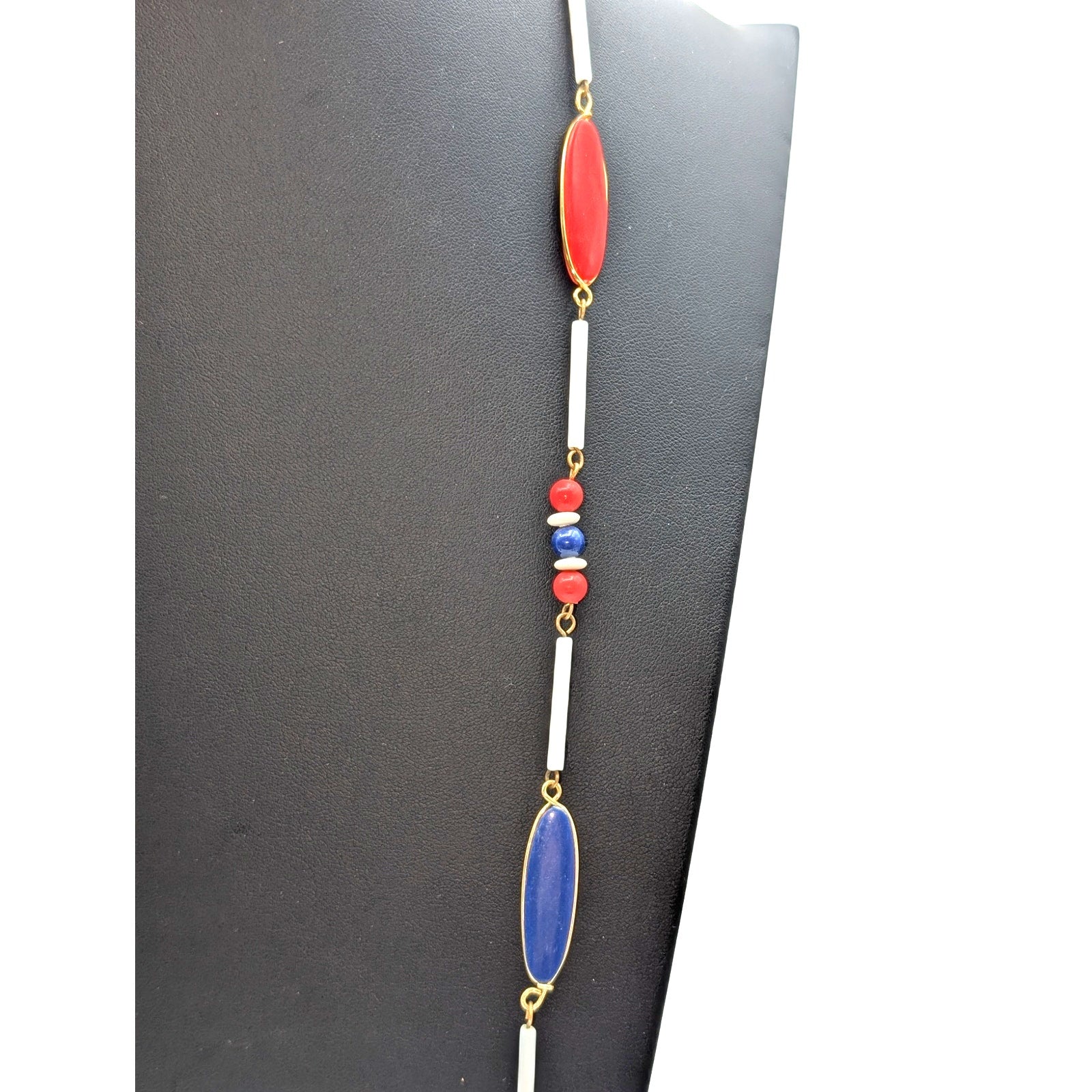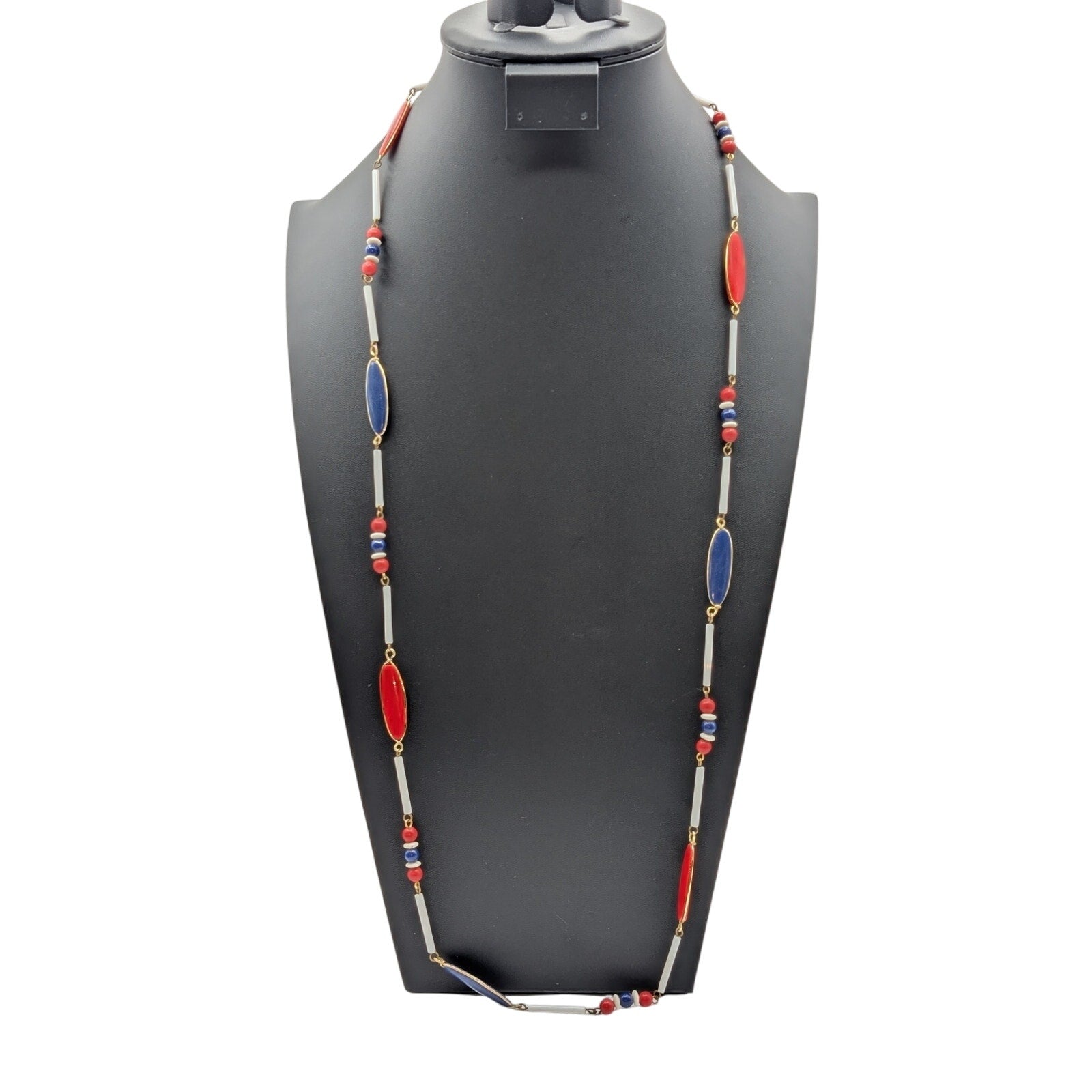 Vintage Red White Blue Multi Shape Long Acrylic Beaded Necklace