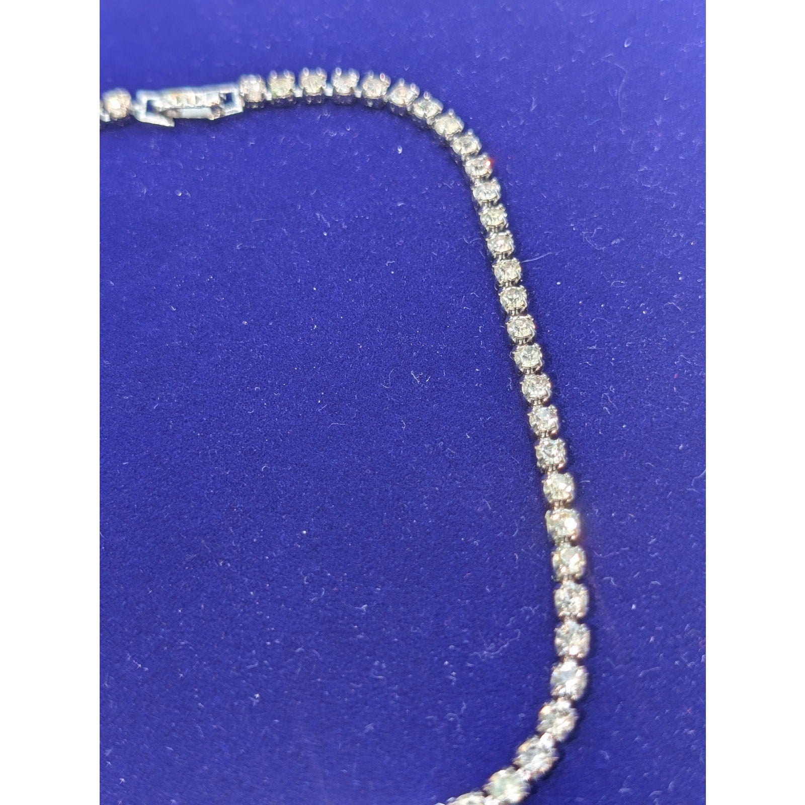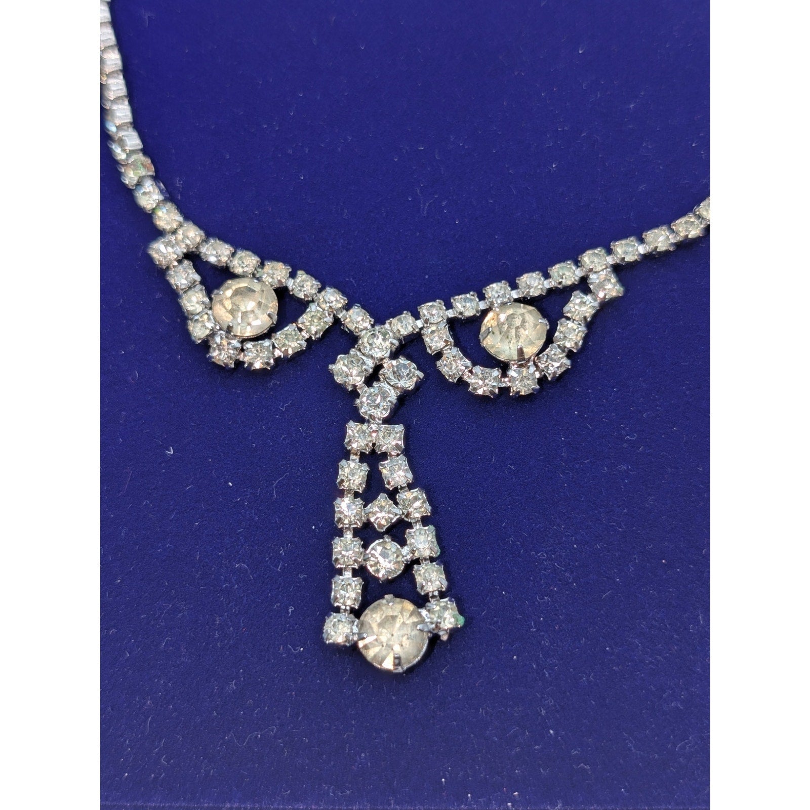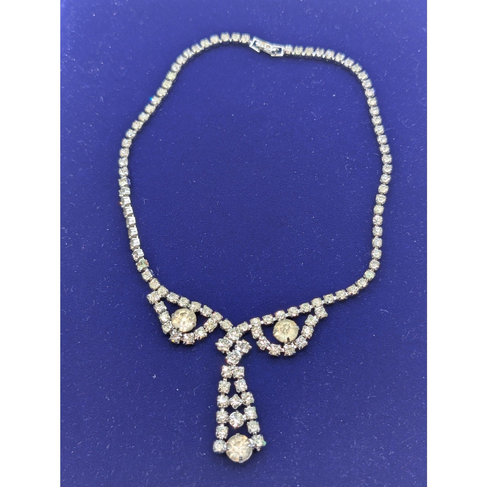 Vintage Rhinestone Dangle Fold Over Clasp Silver Tone 14.75" Necklace. Pre-owned, this rhinestone necklace is in good condition.
