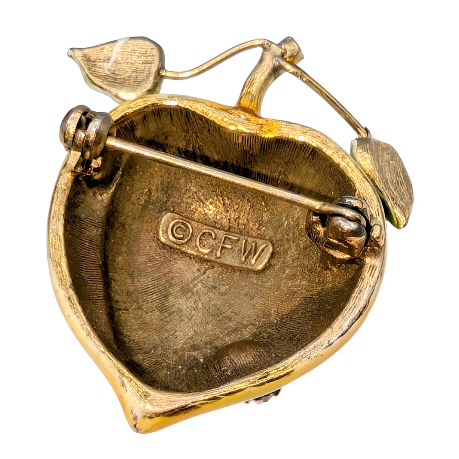 Vintage Signed CFW Yellow Green Enamel Signed Fruit Rhinestone Pin. Pre-owned, this pin is in excellent vintage condition. Really sweet.