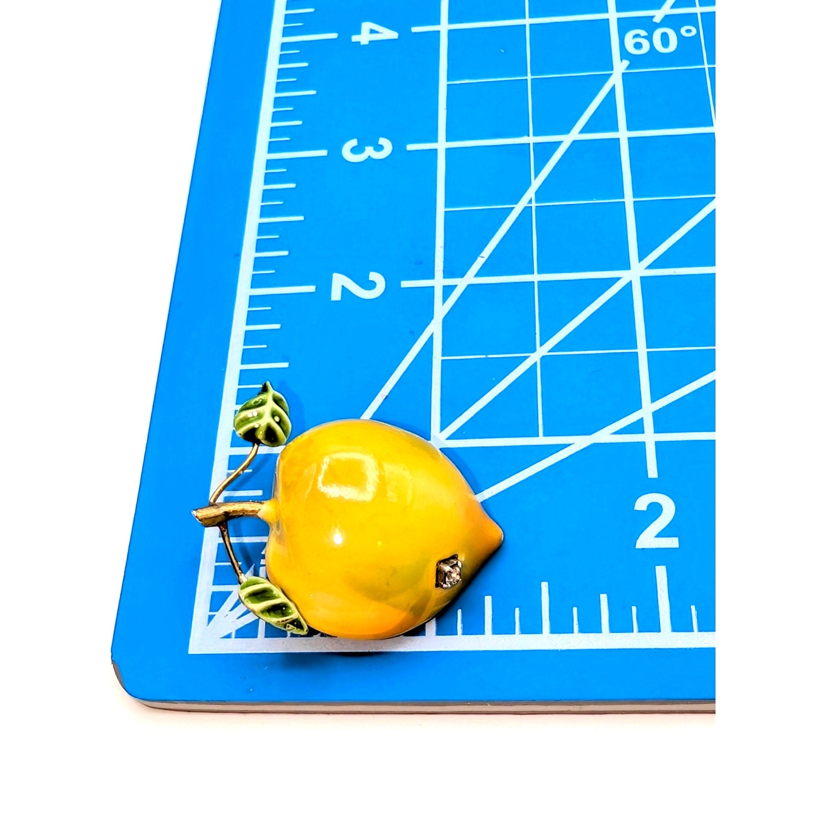 Vintage Signed CFW Yellow Green Enamel Signed Fruit Rhinestone Pin