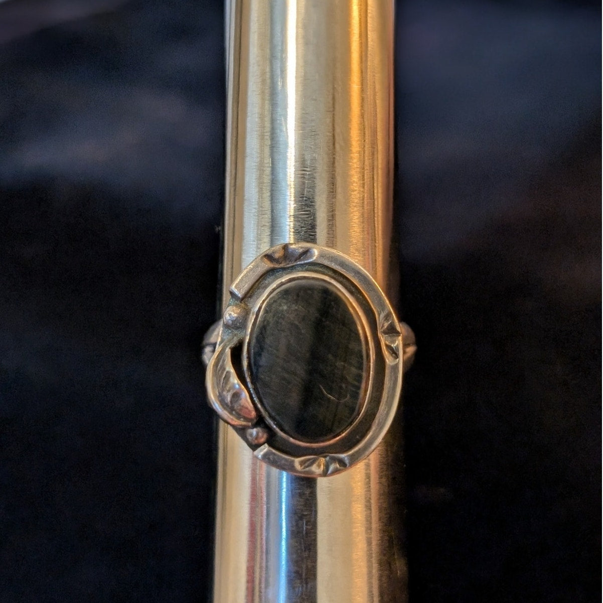 Vintage Signed GF15 Sterling Mexico Black Stone Native American Ring Size 6.5