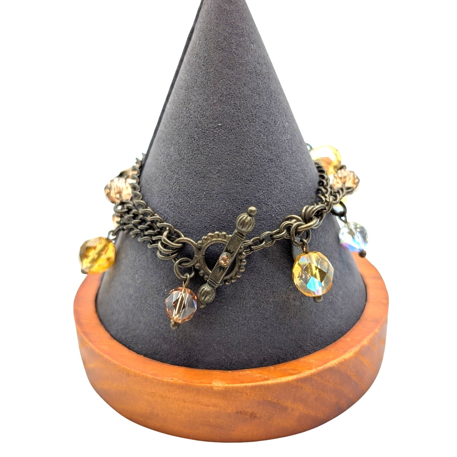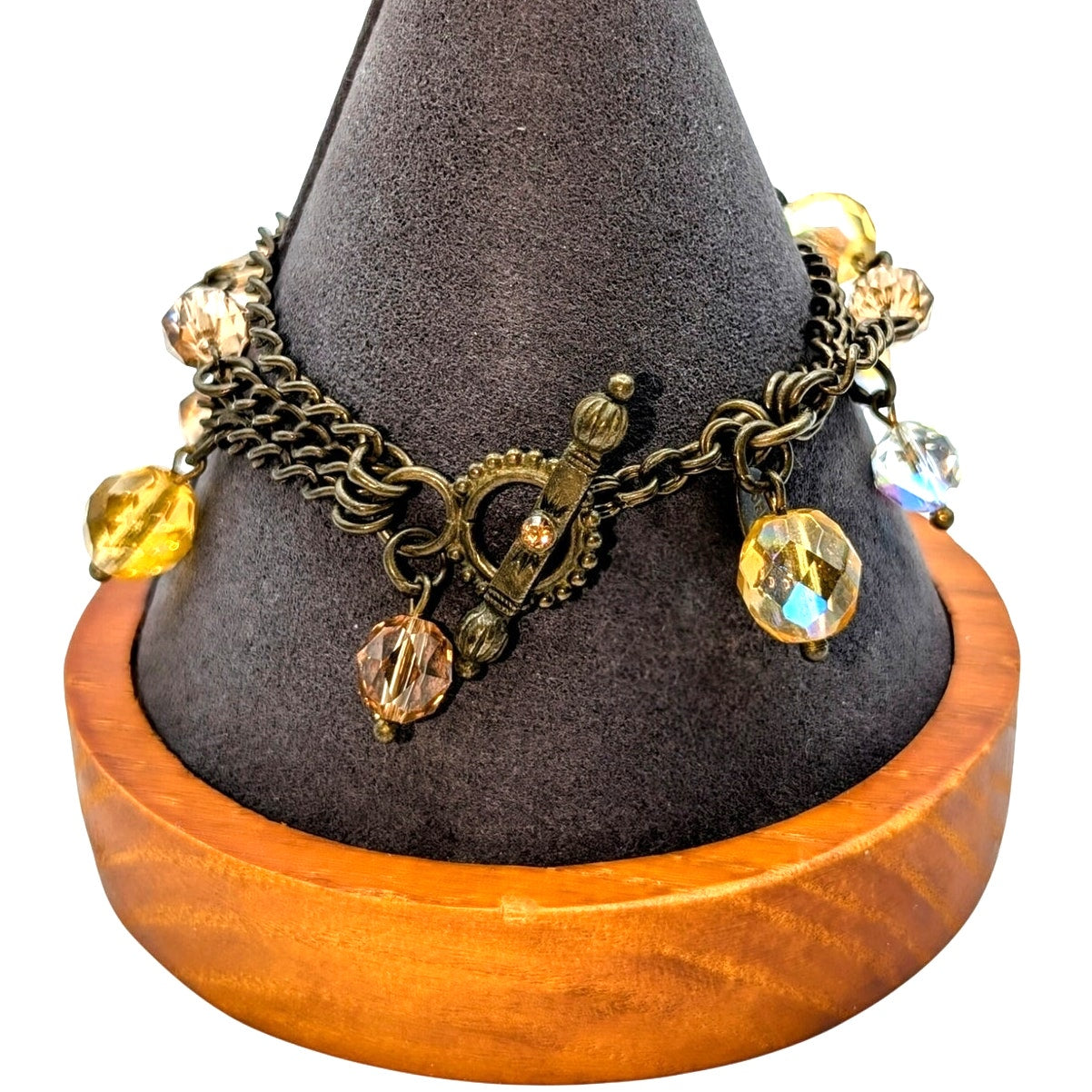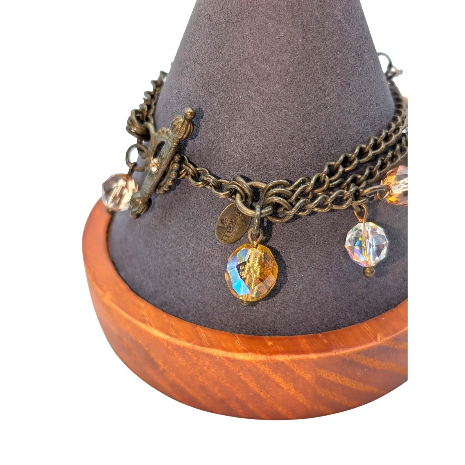 Vintage Signed Sorrelli Brass Genuine Crystal Multi Chain Toggle Clasp Bracelet