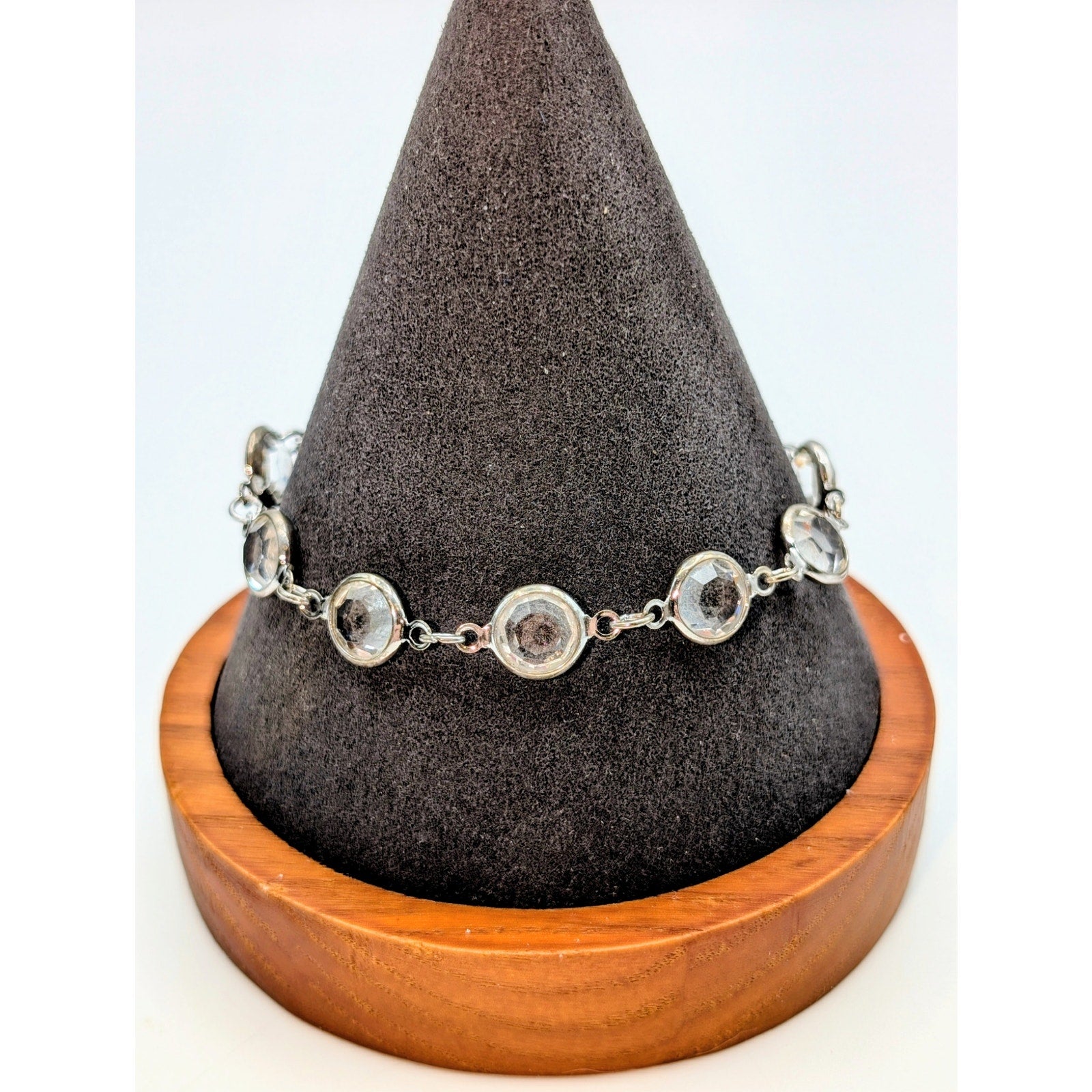 Vintage Signed Swarovski Silver Plate Clear Bezel Set Crystal Bracelet