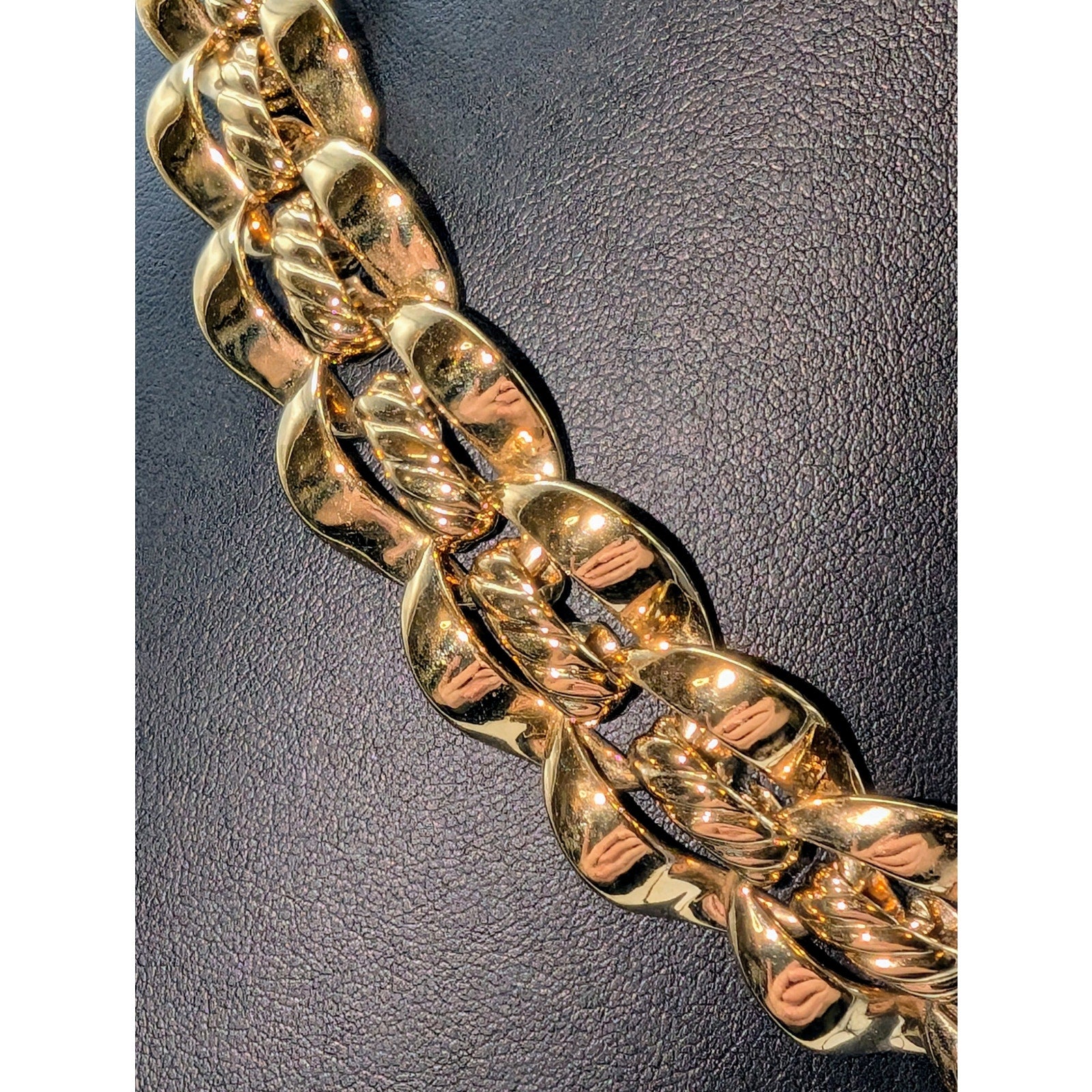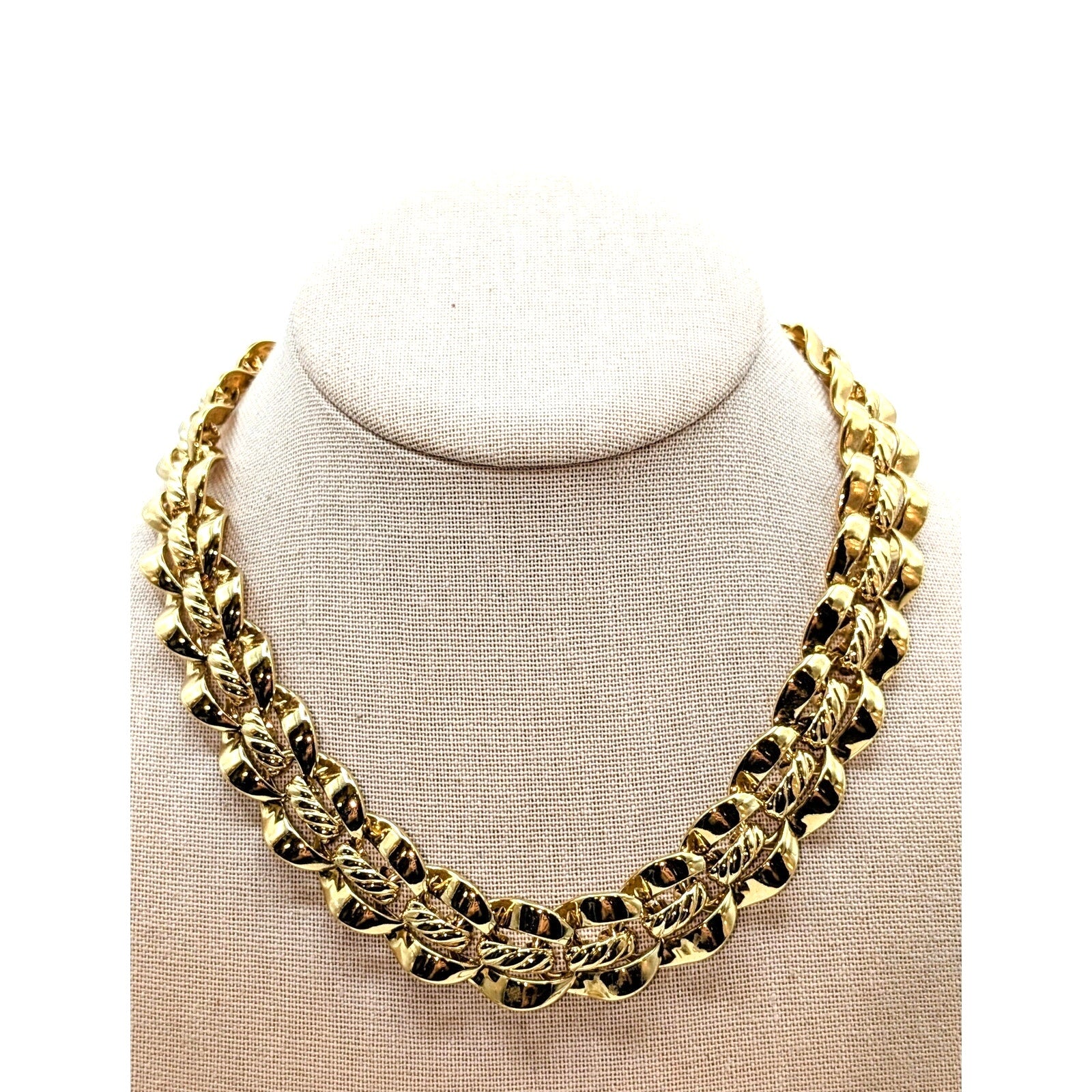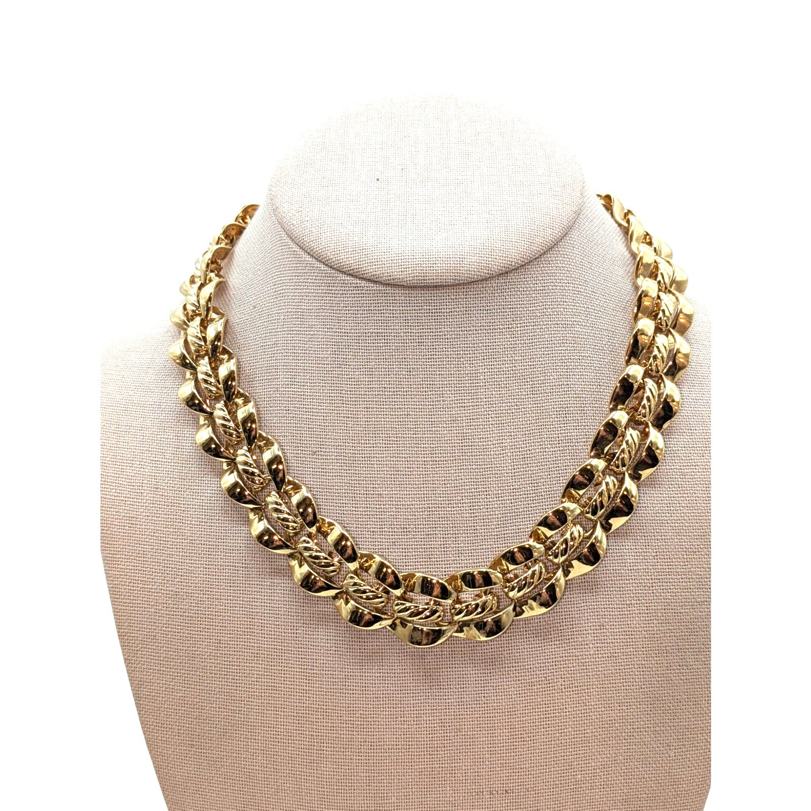 Vintage Signed Trifari Polished Curved Joined By Textured Link Chain Necklace
