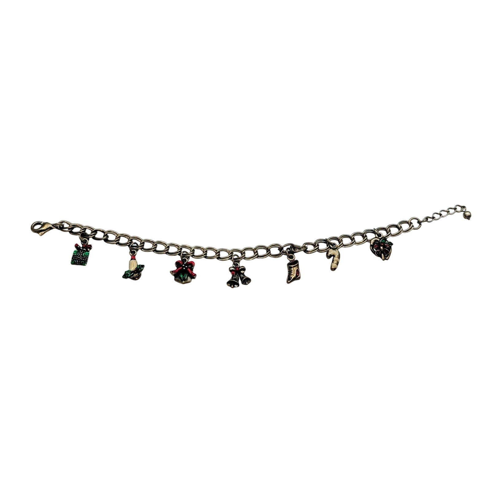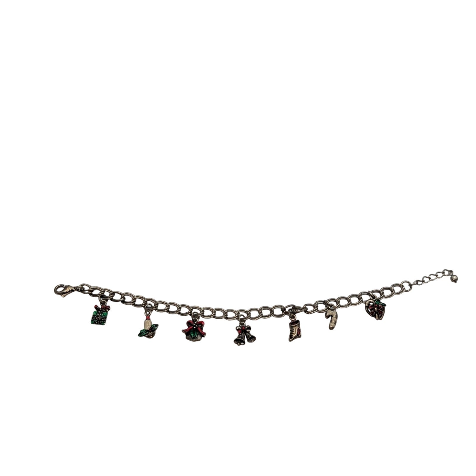 Vintage Silver Tone Double Curb Chain Link Christmas Charm 7"-8" Bracelet. Pre-owned, this bracelet is in great vintage condition.