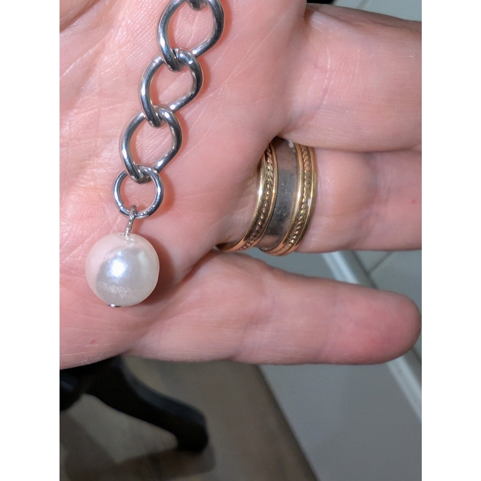 Vintage Silver Tone Three Strand Faux Pearl & Chain Link Belt 34"-45". Pre-owned, this vintage belt is in excellent condition. Bought in the 80s or 90s.