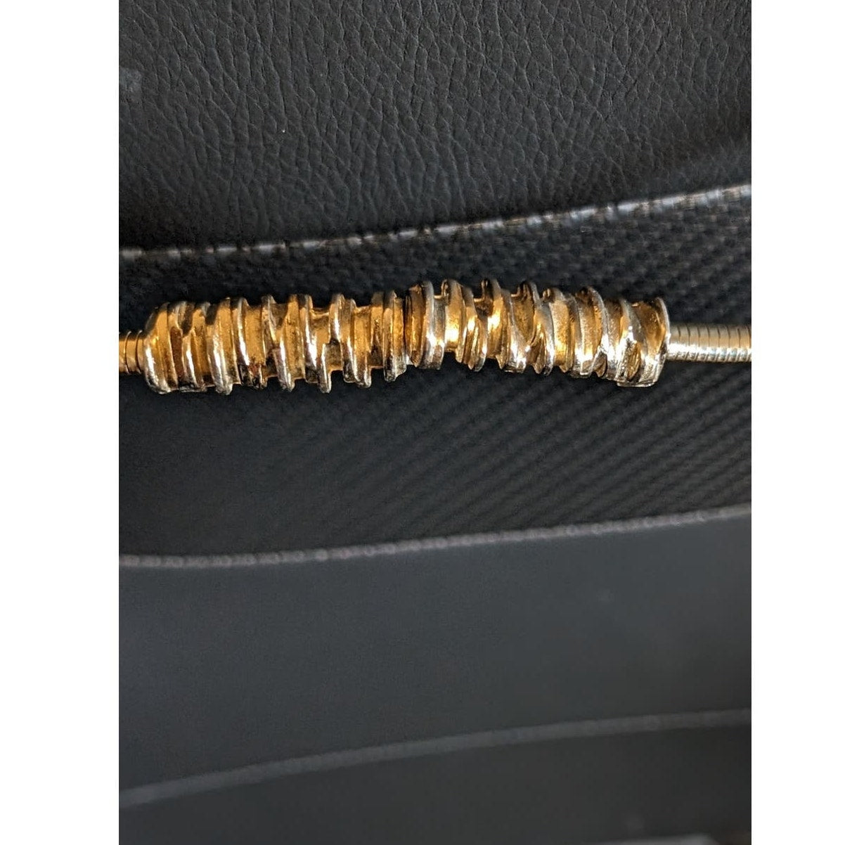 Vintage Skinny Gold Tone Stretch Belt W/ Clasp Front Design 26-28". Pre-owned, this belt is in excellent vintage condition.