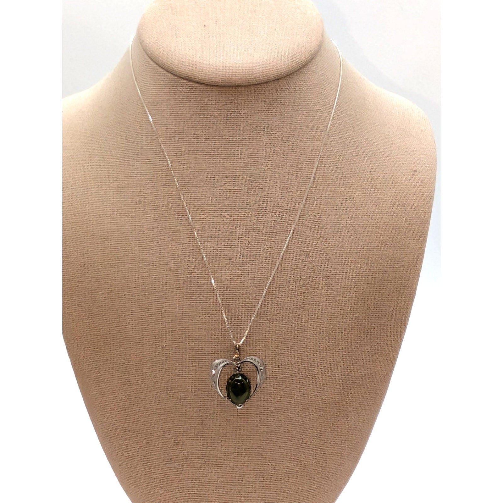 Vintage Sorrento Sterling Green Glass Cabochon Filigree Heart Pendant 18" Necklace. Pre-owned, this necklace is in excellent condition.