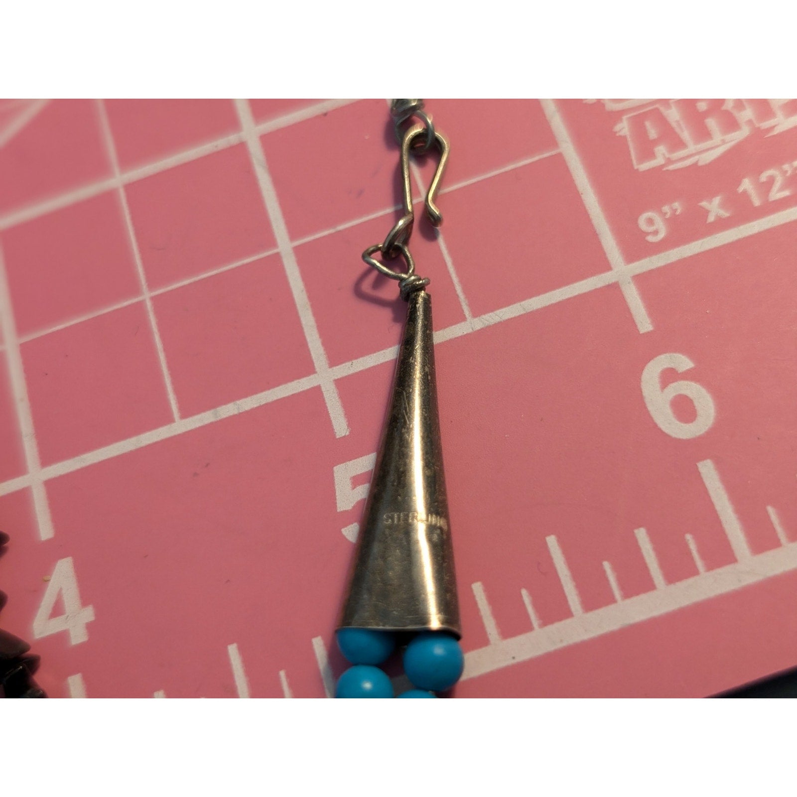 Vintage Southwestern Four Strand Small Black Stone Chip Beaded Necklace W/ Sterling Cone Ends. Pre-owned, this necklace is in excellent vintage condition. There are a few dents on the cone ends but otherwise in excellent overall condition. Measures 21" long. Hook clasp. Chips register as tourmaline on gem tester.