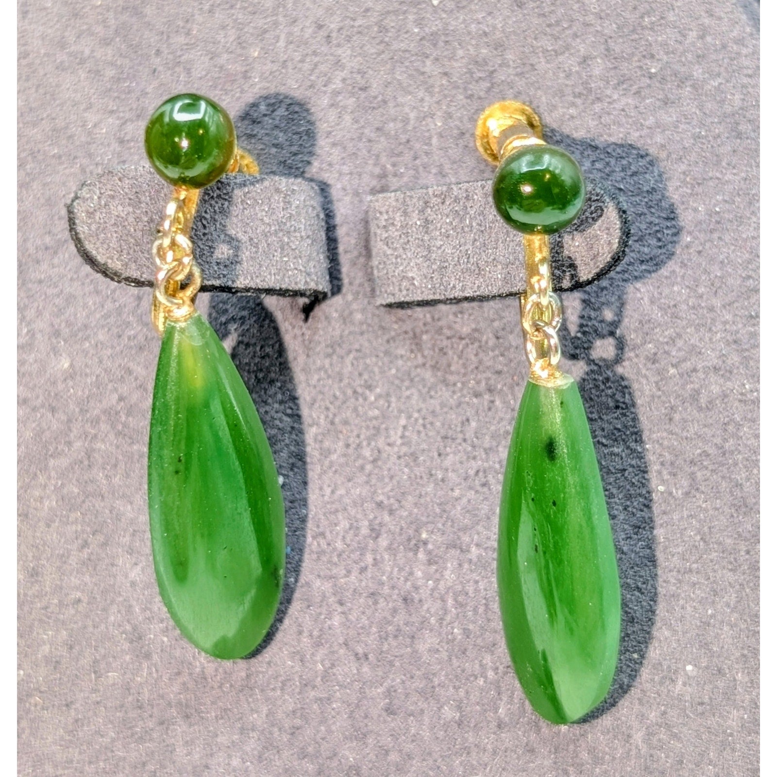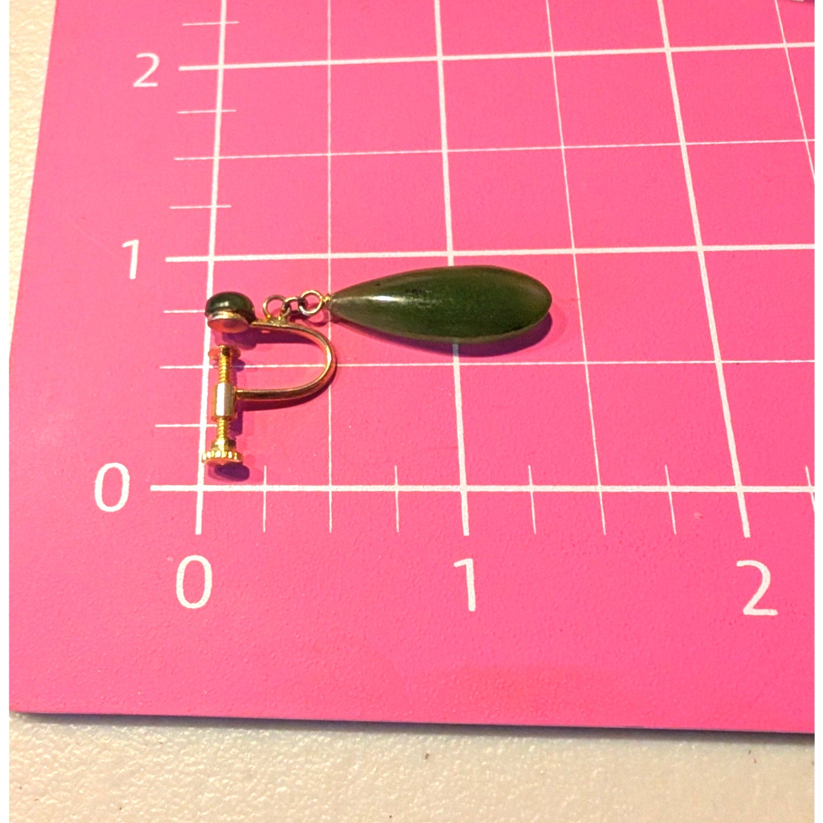 Vintage Spinach Green Nephrite Jade Gold Tone Screw Back Earrings. Pre-owned, these earrings are in excellent condition.